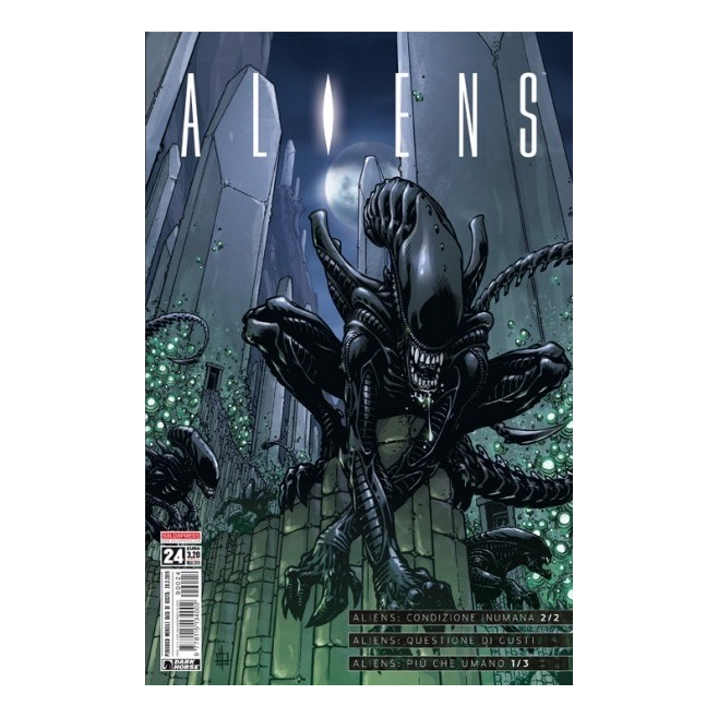 Il nuovo numero del mensile ALIENS ospita tre grandi storie, molto diverse tra loro: il secondo e ultimo episodio di una mini-serie leggendaria, uno one-shot unico nel suo genere e il prologo di un’altra grande mini-serie che sarà composta in tutto da quattro episodi. Si tratta, rispettivamente, di ALIENS: INHUMAN CONDITION, scritto da John Layman e disegnato da Sam Kieth; di ALIENS: TASTE, scritto da Edward Martin III e disegnato da Mark A. Nelson; e del prologo di ALIENS: MORE THAN HUMAN, scritta da John Arcudi e disegnata da Zach Howard e Gabriel Andrade.
