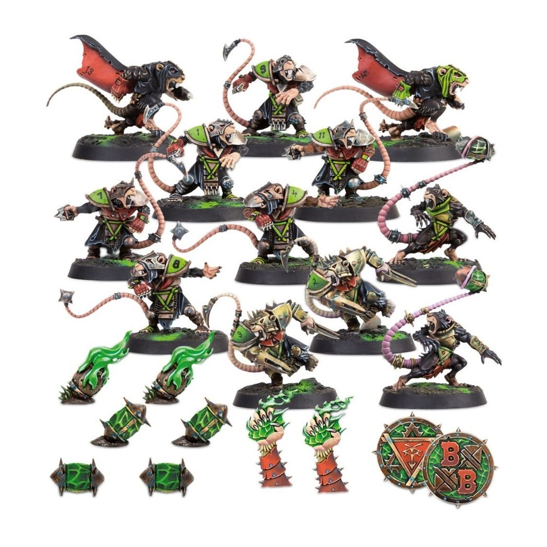 The only team to have ever won the Blood Bowl trophy two years on the run (Blood Bowl XVII and XVIII, fact fans,) the Skavenblight Scramblers are at least a bit legendary. They’ve had a run of bad luck since then, but since the recent appointment of their new head coach, Sandch Blackpelt, they’ve seen a new lease of life. Being Skaven, they naturally have a love for absolute, mindless violence, and their recent uptick in confidence and aggression has seen them elected Team of the Year 2493 in Spike! Magazine. Perhaps another trophy is within their grasp… This multi-part plastic kit contains the components necessary to assemble a Skaven team for use in games of Blood Bowl. You’ll receive 2 Blitzers, 2 Throwers, 2 Gutter Runners and 6 Linemen, the perfect core for your roster. Also included are a transfer sheet, turn markers, extra balls, an example roster sheet, and 12 Citadel 32mm Round Blood Bowl bases featuring holes to keep the ball in. Rules for using Skaven teams in your games of Blood Bowl can be found in Blood Bowl – The Official Rules. These miniatures are supplied unpainted and require assembly.