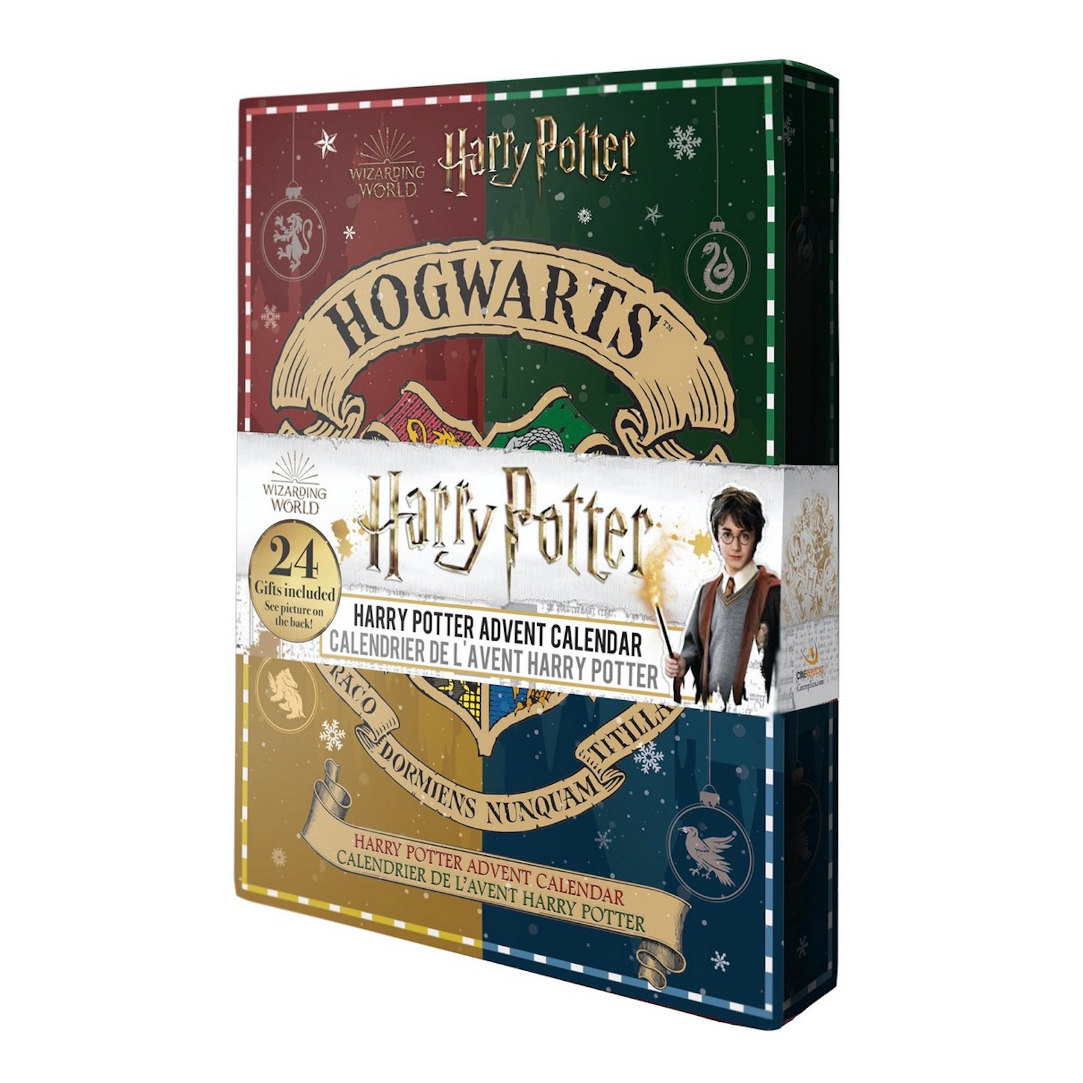 This Advent Calendar includes 24 Wizarding World gifts: Pin, ring stand holder, paper clips, memo block, plush keychain, mini chocolate frog card, memo pad, eraser, puzzle, mylar balloon, golden sticker, stamper, washi tape, keychain, magnet, drawstring pouch, card holder, glow in the dark sticker, microfiber cleaning cloth, socks, highlighter.