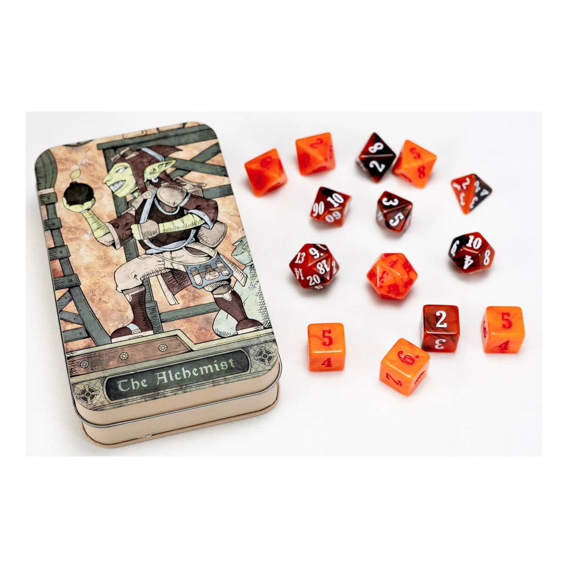 You are the alchemist, and these are your bombs…err, dice. Your fire needs no patron, deity or spellbook—just a steady hand and a well-researched recipe. Sure, philosophers say that creation is more noble than destruction, but who do those philosophers call when they’re besieged by an army of hobgoblins?