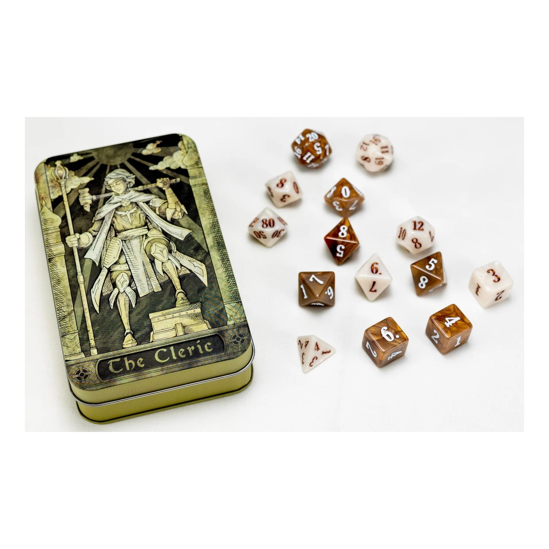 Unseal this relic to reveal 14 dice in two color designs, with four d8s for healing allies or dispatching enemies with your god’s sacred flame.