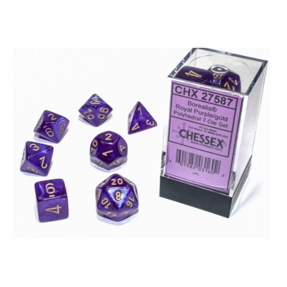 Chessex – Borealis Royal Purple/gold Luminary Polyhedral 7-Die Set (CHX27587)Disponibilità : Disponibile