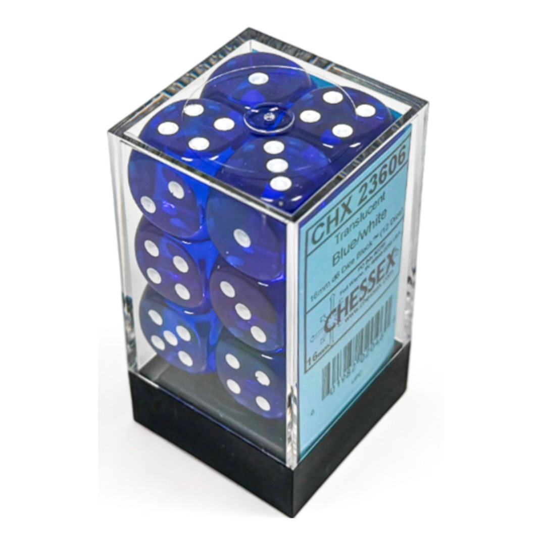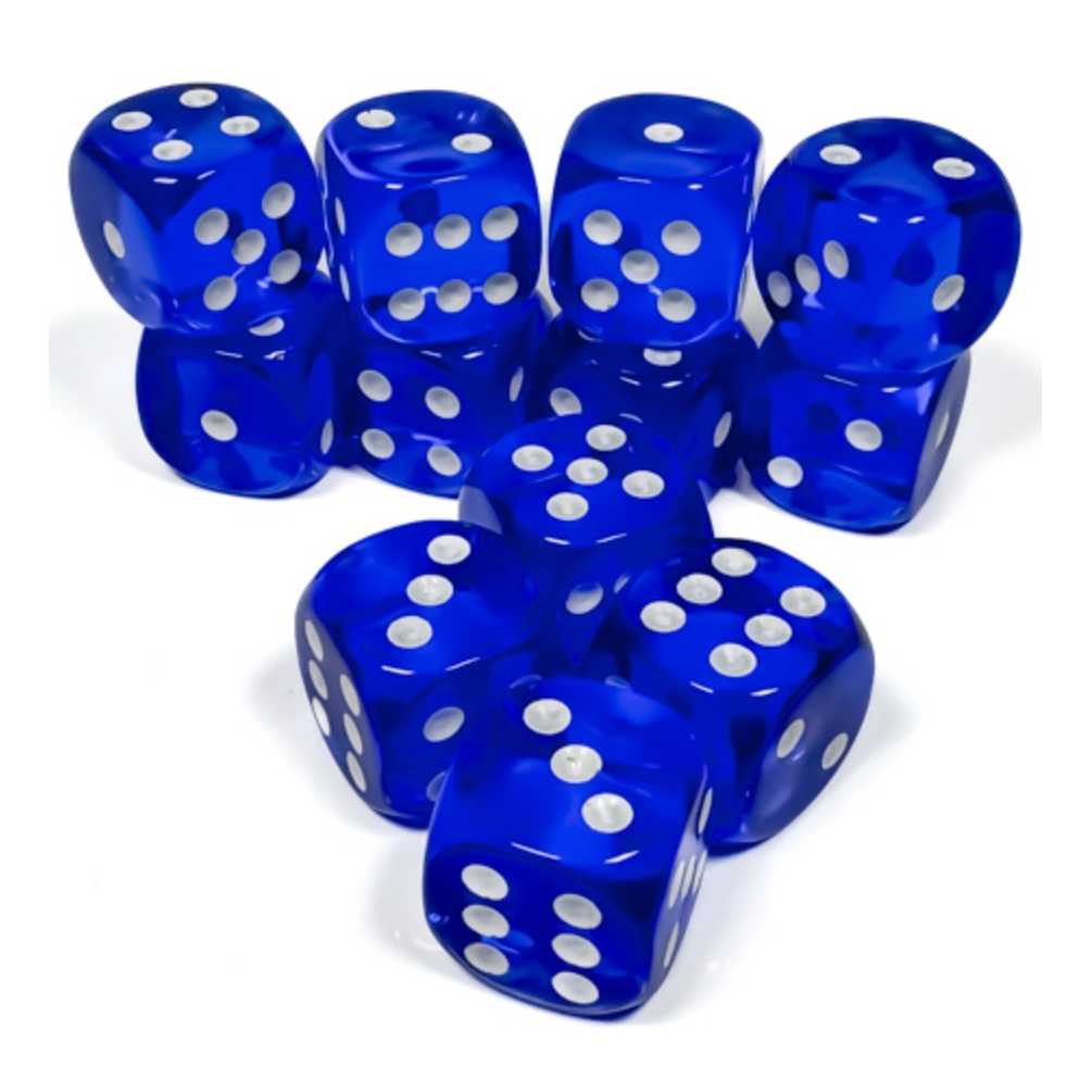 Chessex – Dice Block (12 dice) 16mm d6 – Translucent Blue/White (CHX23606)Disponibilità : Disponibile
