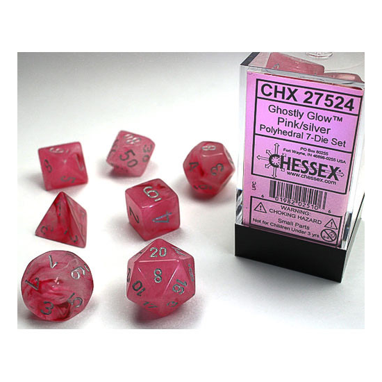 Chessex – Ghostly Glow Pink/silver Polyhedral 7-Die Set (CHX27524)Disponibilità: Solo 2 pezzi disponibili