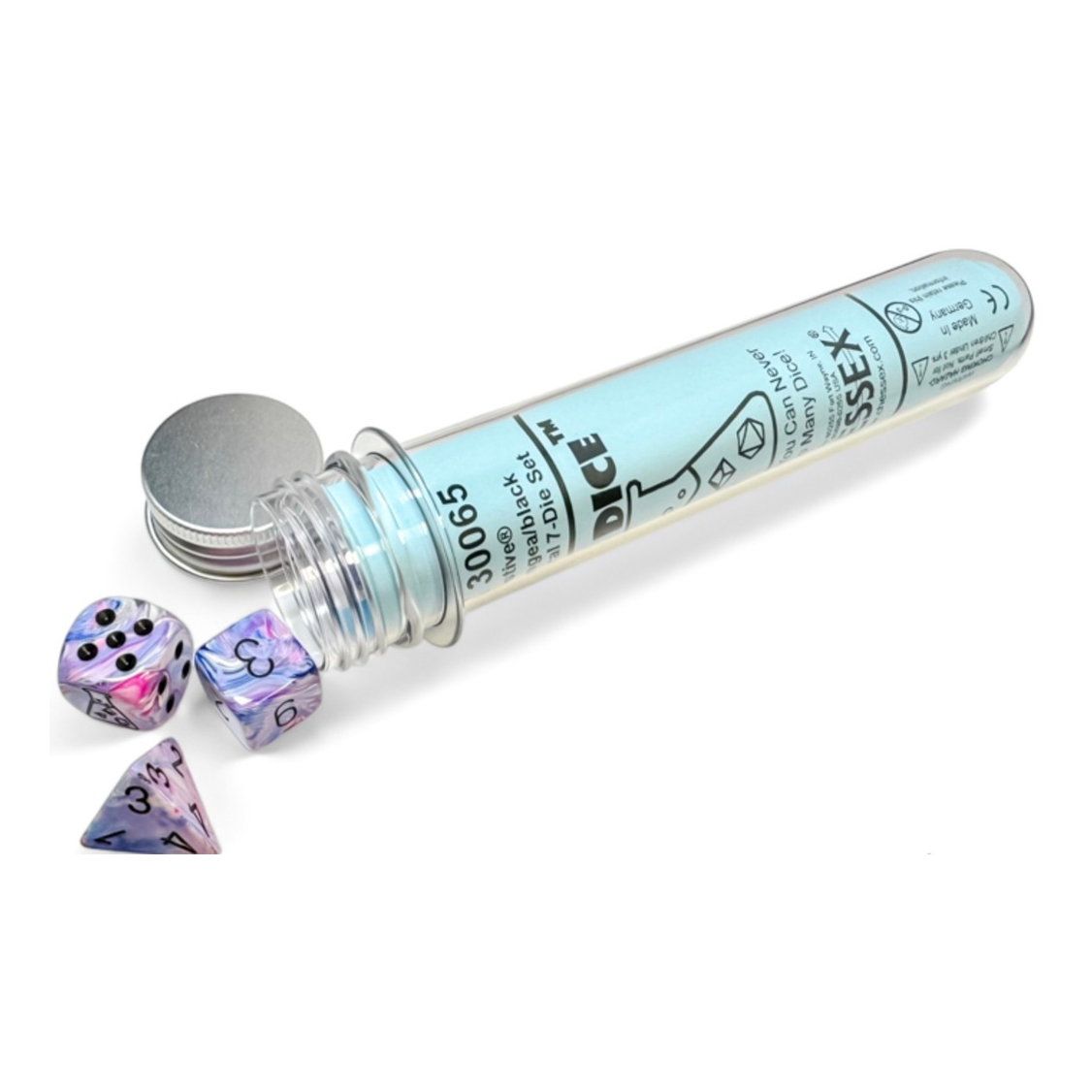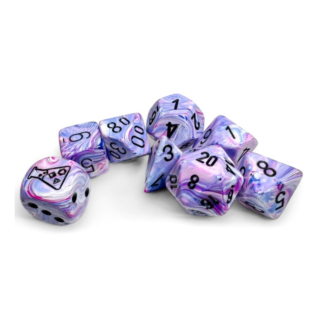 This set contains 8 Festive® Hydrangea™ dice with black numbers.