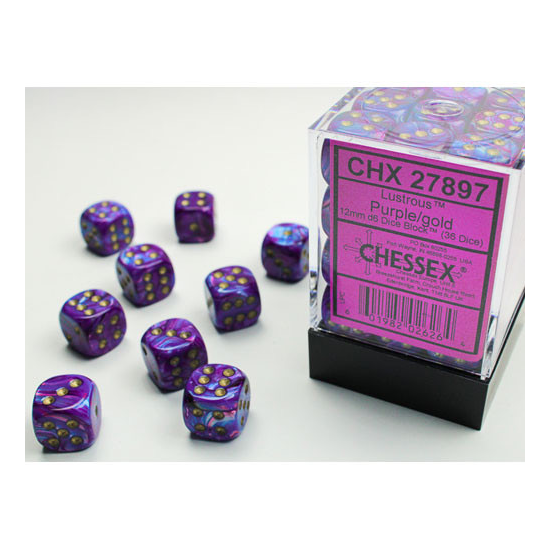 2908Chessex – Lustrous Purple/gold 12mm d6 Dice Block (36 dice) (CHX27897) (CHX27897)