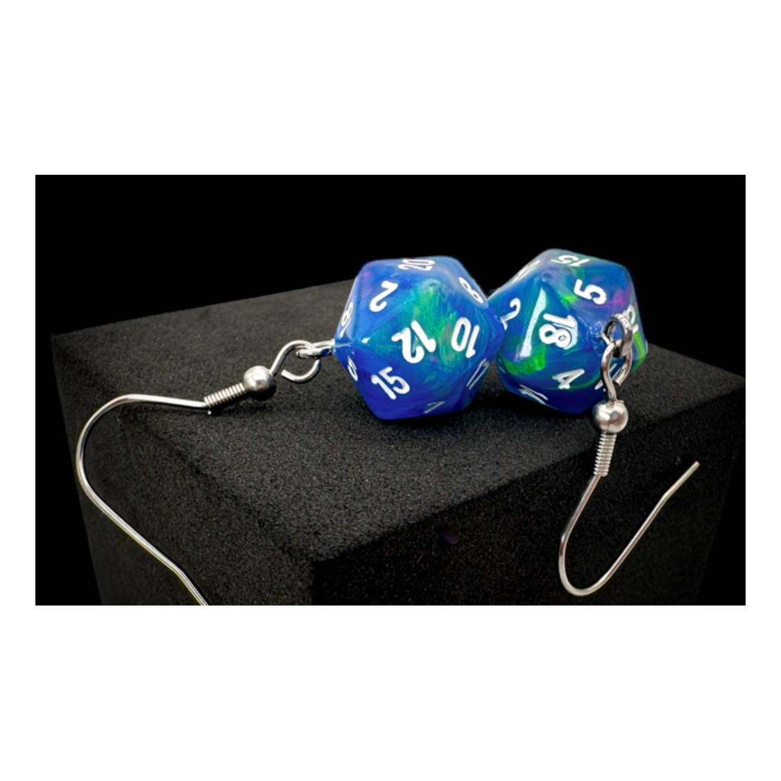 Hook Earrings Festive Waterlily Mini-Poly d20 Pair