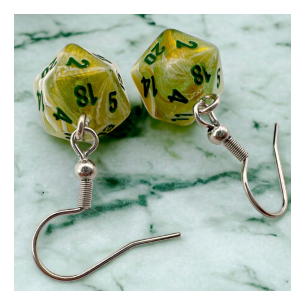 Chessex – Mini Dice Earrings Hook Earrings Marble Green Mini-Poly d20 Pair (CHX54203)Disponibilità : Solo 1 pezzi disponibili