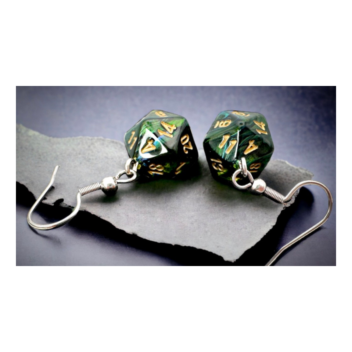 Chessex – Mini Dice Earrings Hook Earrings Scarab® Jade Mini-Poly d20 Pair (CHX54204)