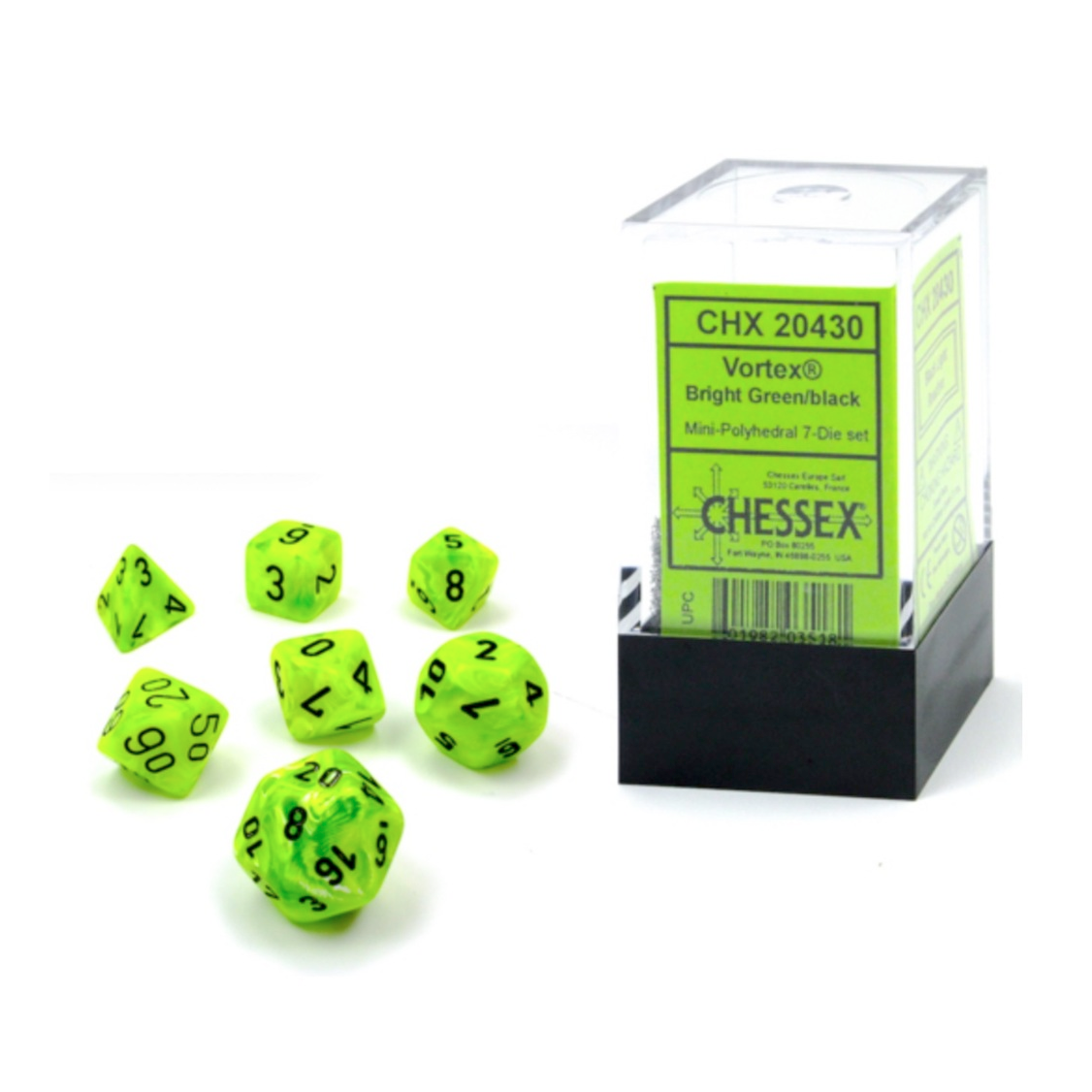 Chessex – Mini Polyhedral Sets & Bags Vortex® Mini-Polyhedral Bright Green/black 7-Die Set (CHX20430)