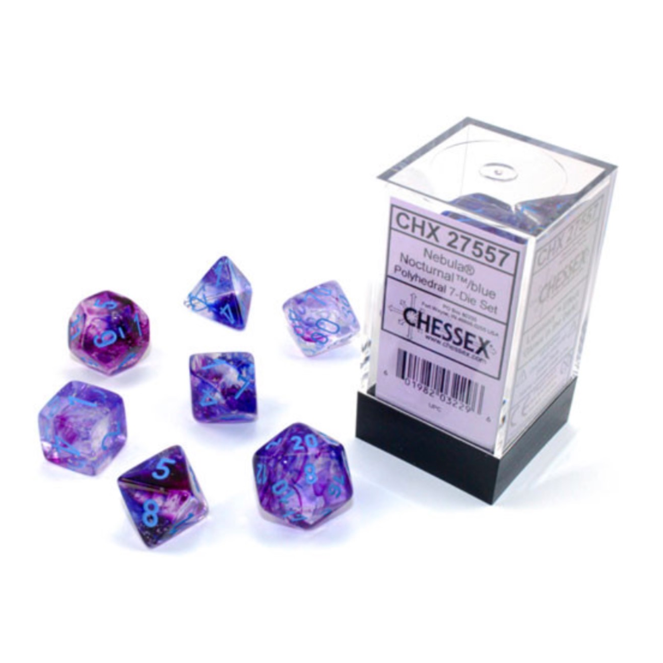 2878Chessex – Nebula Nocturnal/blue Luminary Polyhedral 7-Die Set (CHX27557)