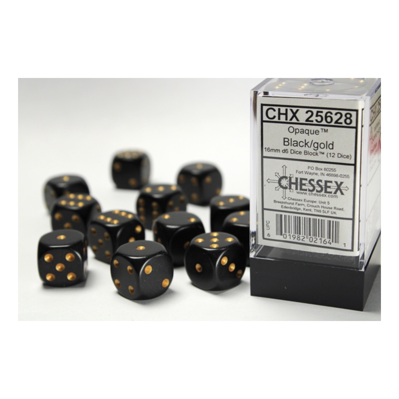 Chessex – Opaque Black/gold 16mm d6 Dice Block (12 dice) (CHX25628) (CHX25628)Disponibilità : Solo 1 pezzi disponibili