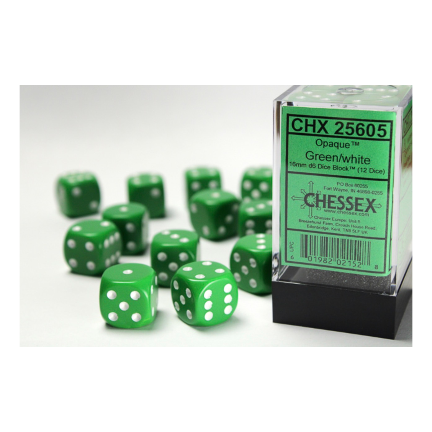 Chessex – Opaque Green/white 16mm d6 Dice Block (12 dice) (CHX25605)Disponibilità : Disponibile