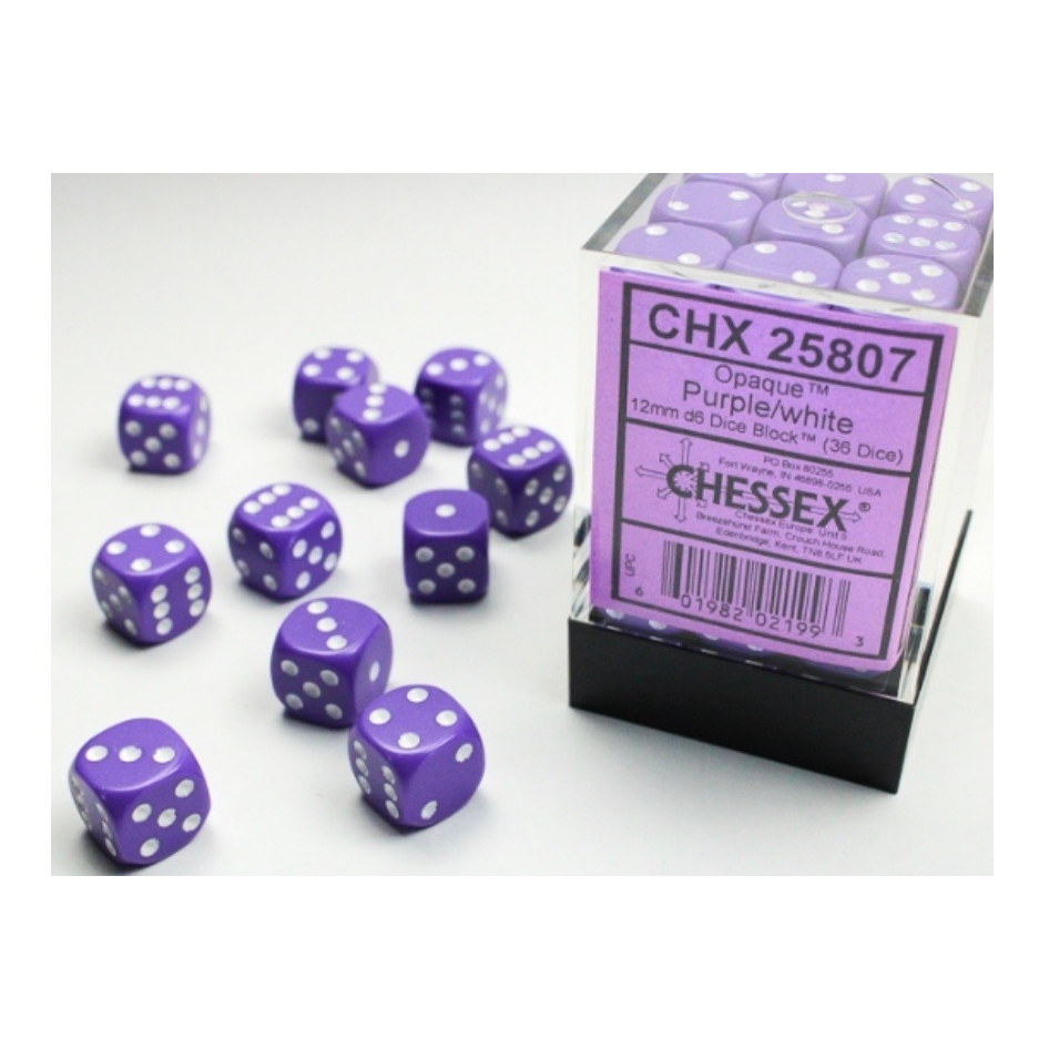 Chessex – Opaque Purple/white 12mm d6 Dice Block (36 dice) (CHX25807)
