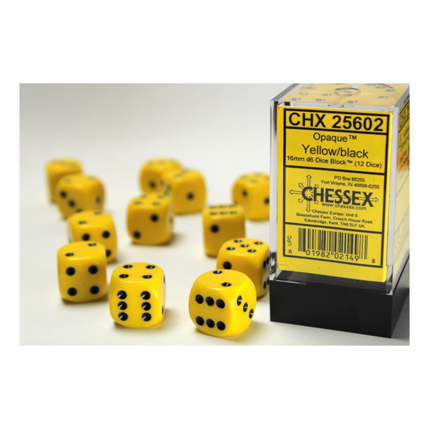 Chessex – Opaque Yellow/black 16mm d6 Dice Block (12 dice) (CHX25602)Disponibilità : Disponibile