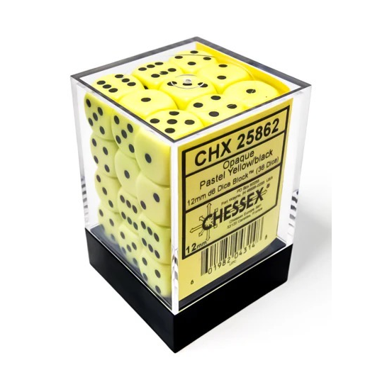 Chessex – Pastel Opaque Set Opaque 12mm d6 Pastel Yellow/black Dice Block™ (36 dice) (CHX25862)Disponibilità: Solo 1 pezzi disponibili