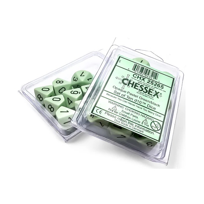 70398Chessex – Pastel Opaque Set Opaque Pastel Green/black Set of Ten d10s (CHX25265)