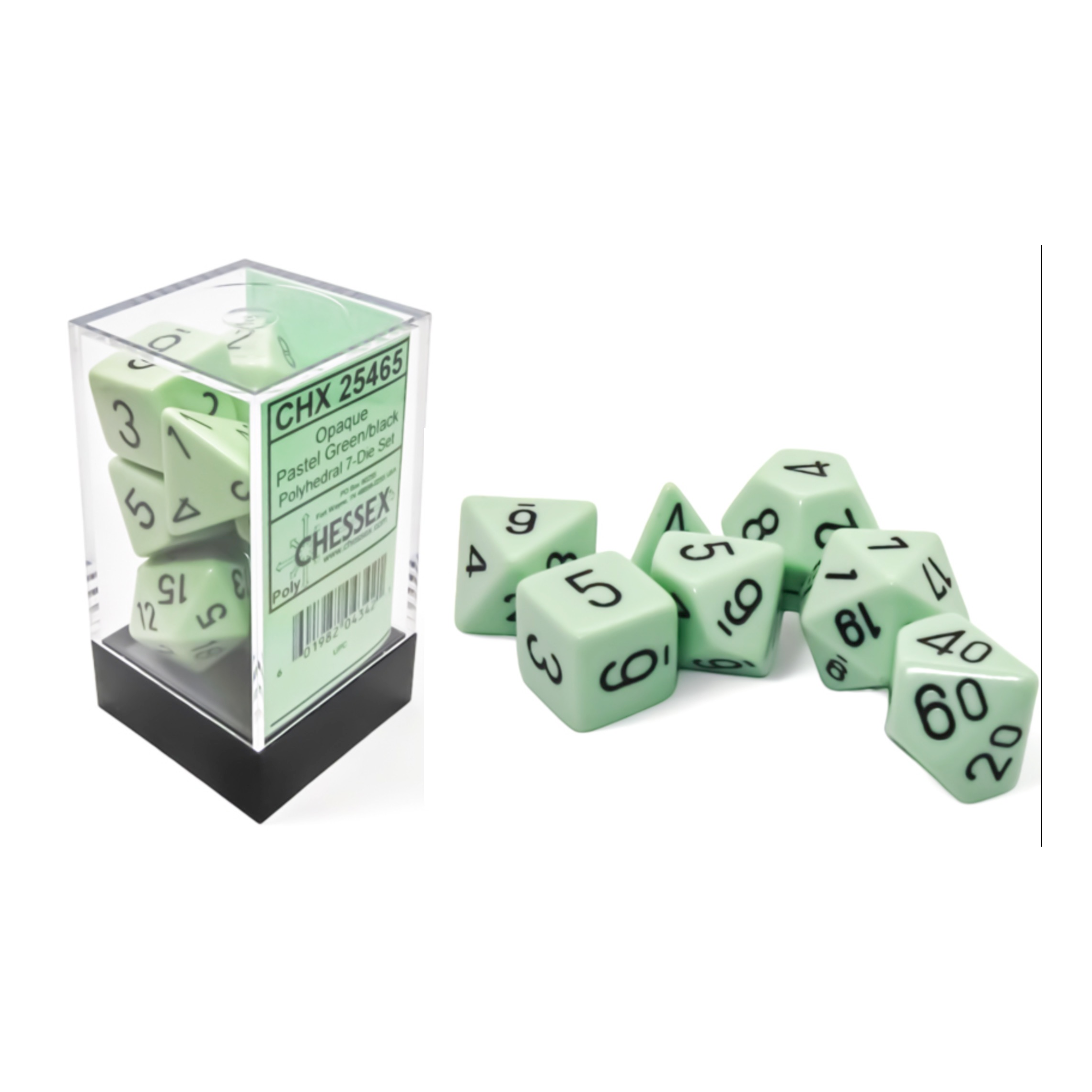 693Chessex – Pastel Opaque Set Opaque Polyhedral Pastel Green/black 7-Die Set (CHX25465)
