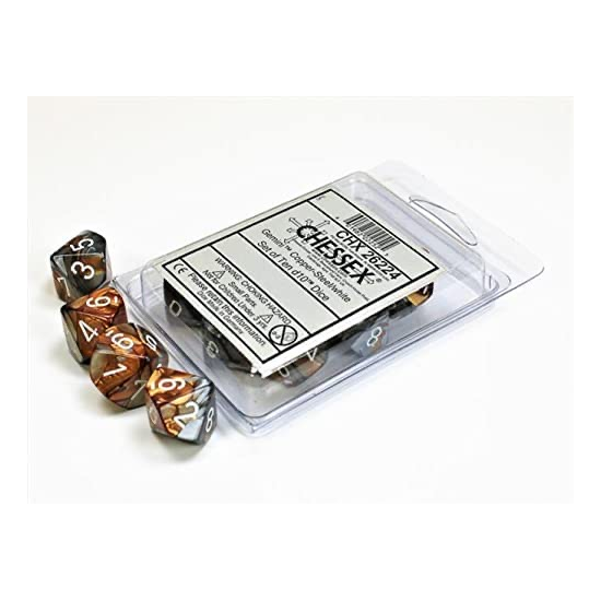 10214Chessex – Set di Dadi D10 – Gemini Copper-Steel/White (CHX26224)