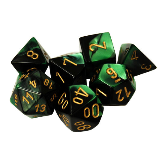 Chessex – Set di Dadi – Gemini Black-Green/Gold (CHX26439)Disponibilità : Disponibile