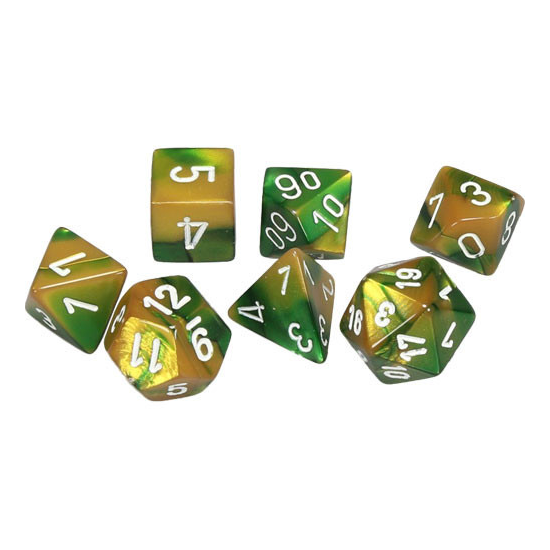 Chessex – Set di Dadi – Gemini Gold-Green/White (CHX26425)Disponibilità : Disponibile