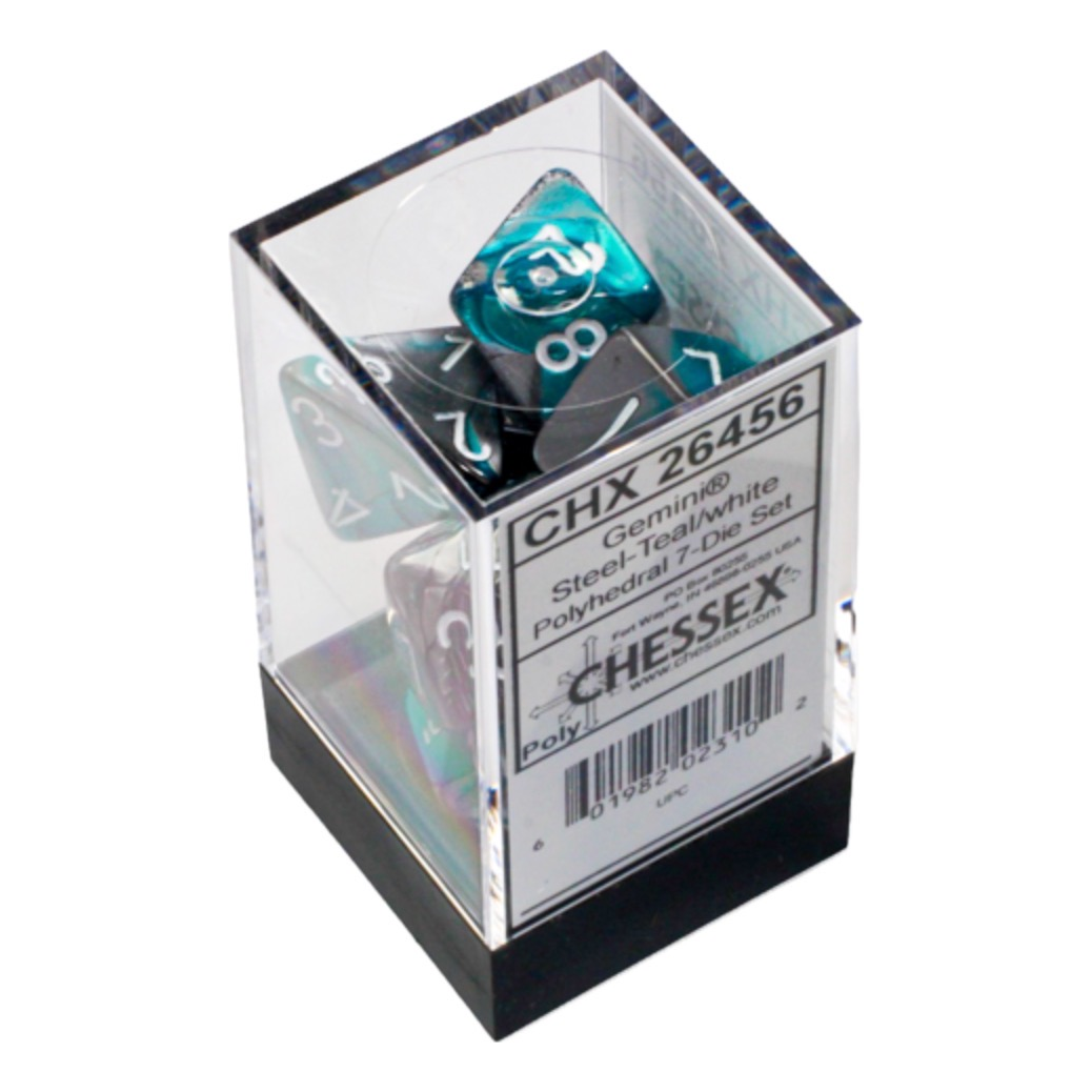 10245Chessex – Set di Dadi – Gemini Steel-Teal/white (CHX26456)