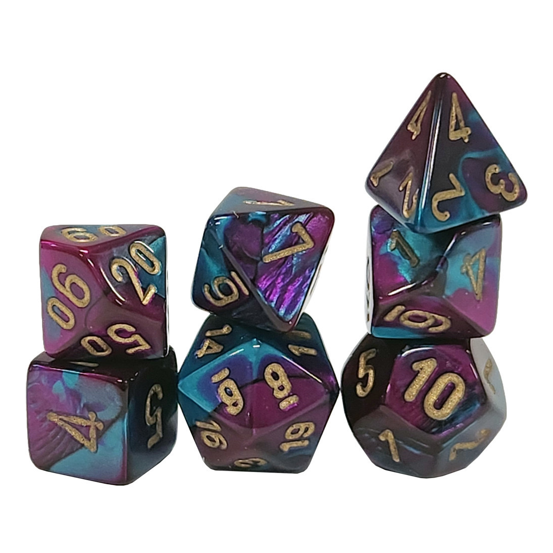 Chessex – Set di mini Dadi – Gemini Purple-Teal/Gold (CHX20649)Disponibilità : Solo 2 pezzi disponibili