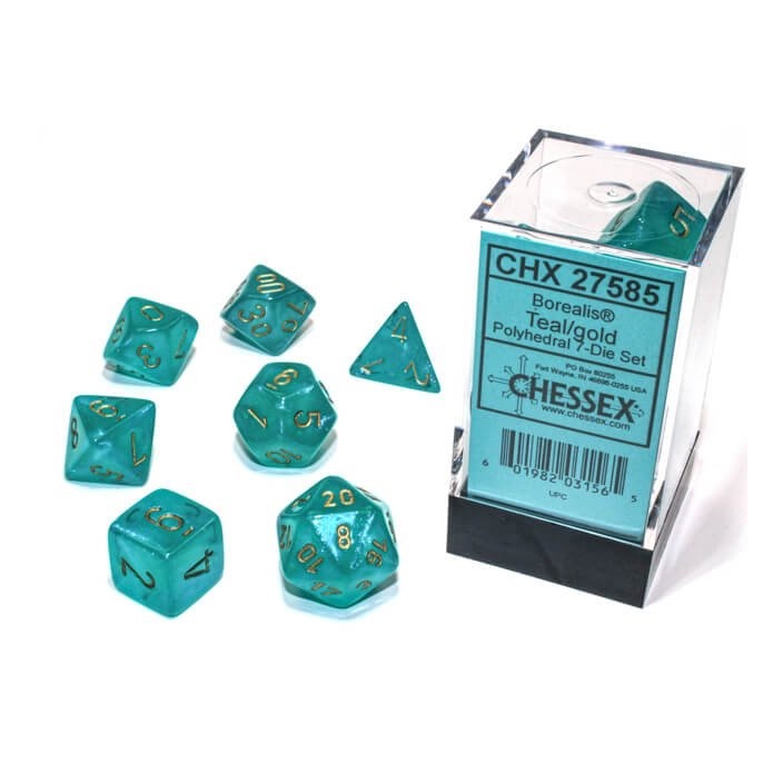 Questo set di 7 dadi Chessex è ideale per il gioco di ruolo. Il set contiene un dado da 4, un dado da 6, un dado da 8, due dadi da 10 (uno dei quali con le decine per il dado percentuale), un dado 12 ed un dado 20.