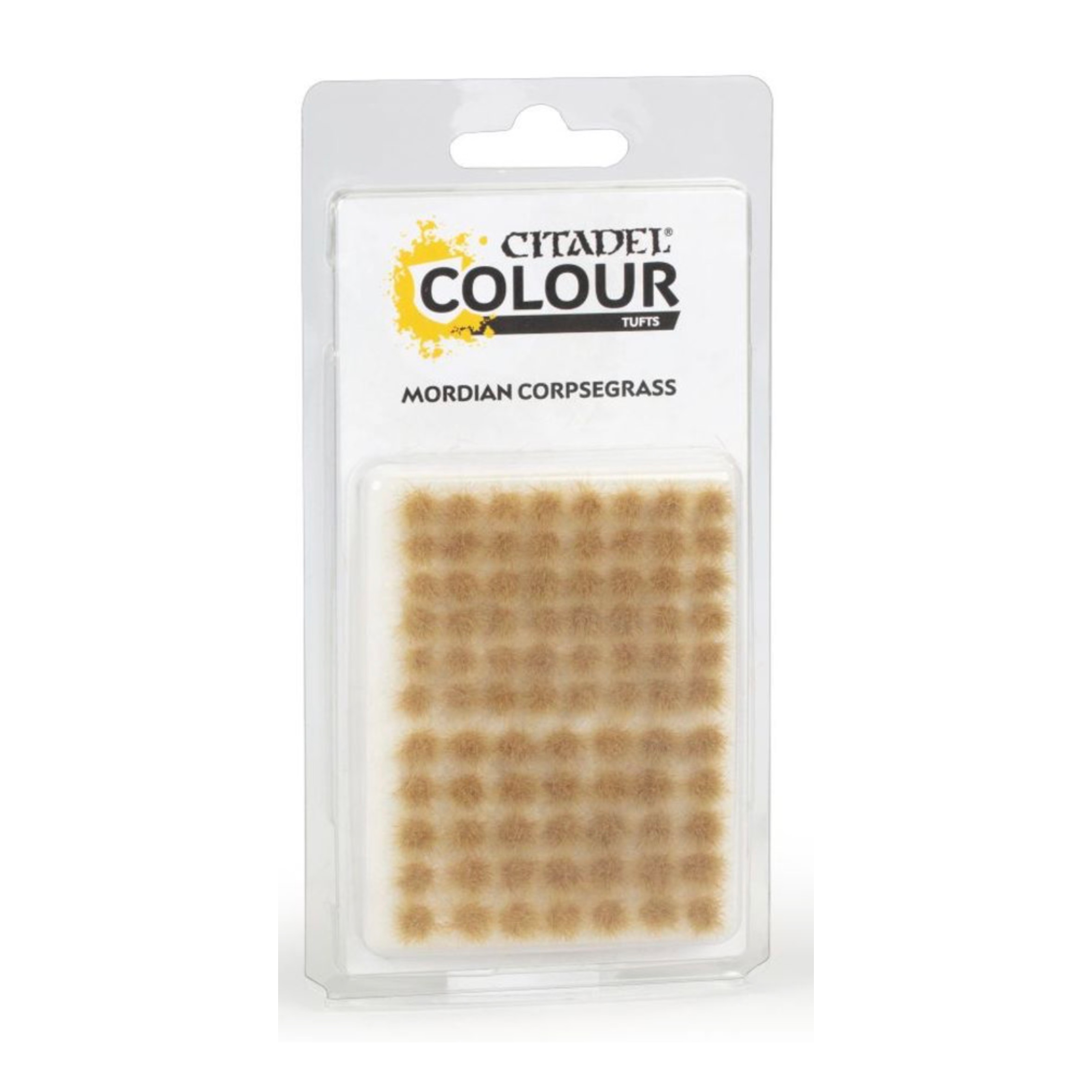 The rigours of battle, hot climates, and other harsh environments take a toll on native plant life, with many formerly verdant fields reduced to dry straw by passing armies. Even so, many plants hold onto life, and can often be found around an army marching through particularly parched lands. Bring colour and detail to your armies’ bases with Mordian Corpsegrass Tufts by Citadel Colour, making it easy to tie your army together with natural-looking bases in minutes. The tufts attach to bases by a strong adhesive backing and can stick to many paints and basing materials. Each one can be easily cut or torn into various shapes as needed, and are perfect for armies deployed to rough, arid environments.