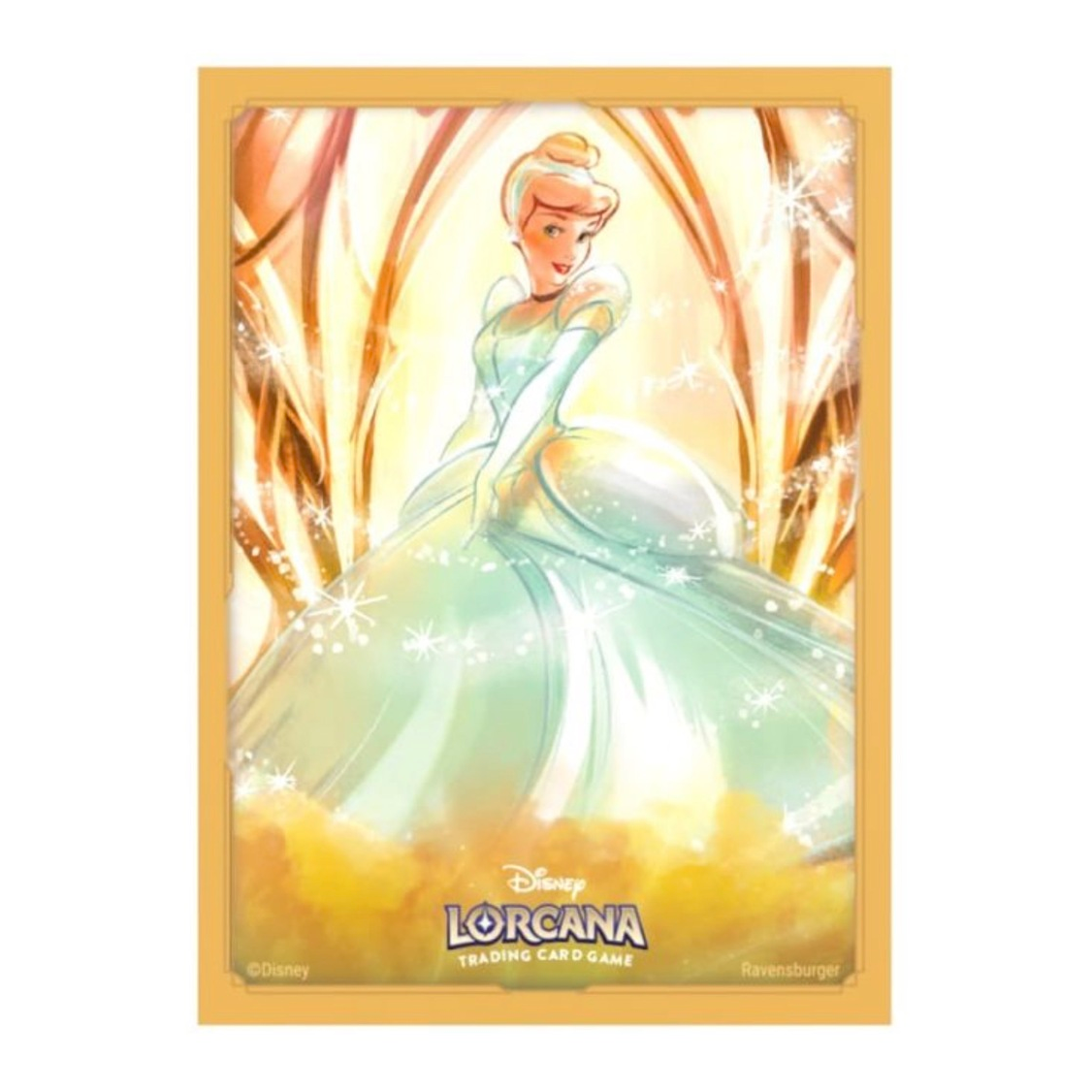 Bustine protettive ufficiali Disney Lorcana dedicate al personaggio di Cenerentola, perfette per proteggere le carte durante il gioco e conservarle in condizioni ottimali.