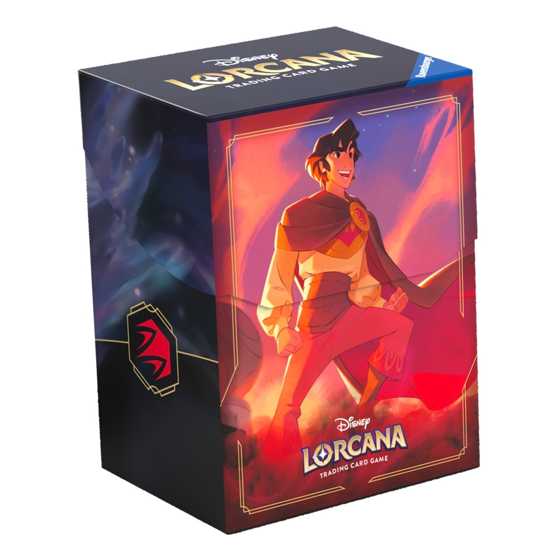 Porta Mazzo ufficiale di Lorcana Disney con immagine di Aladdin perfetto per rendere le tue carte di gioco stupende e perfettamente protette.