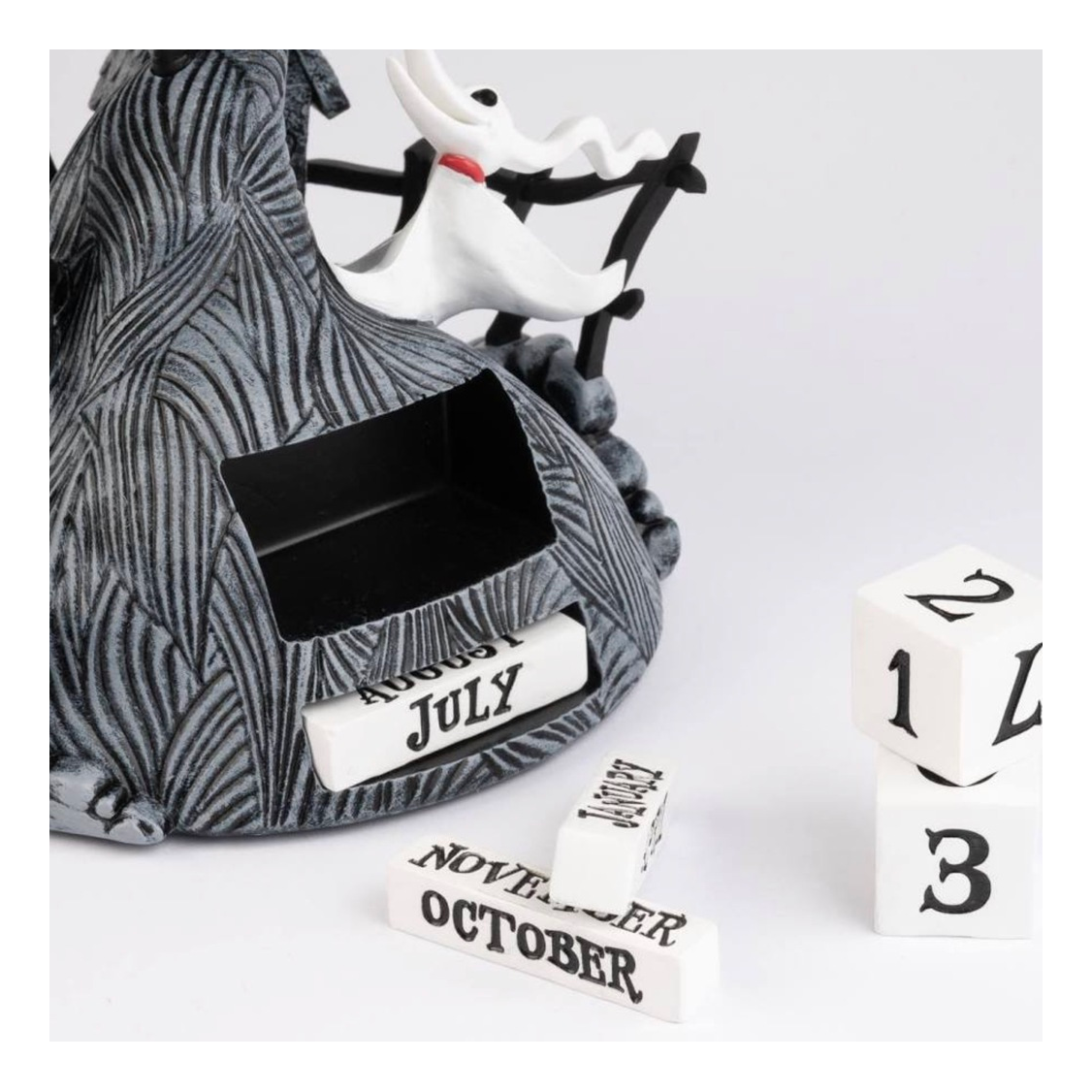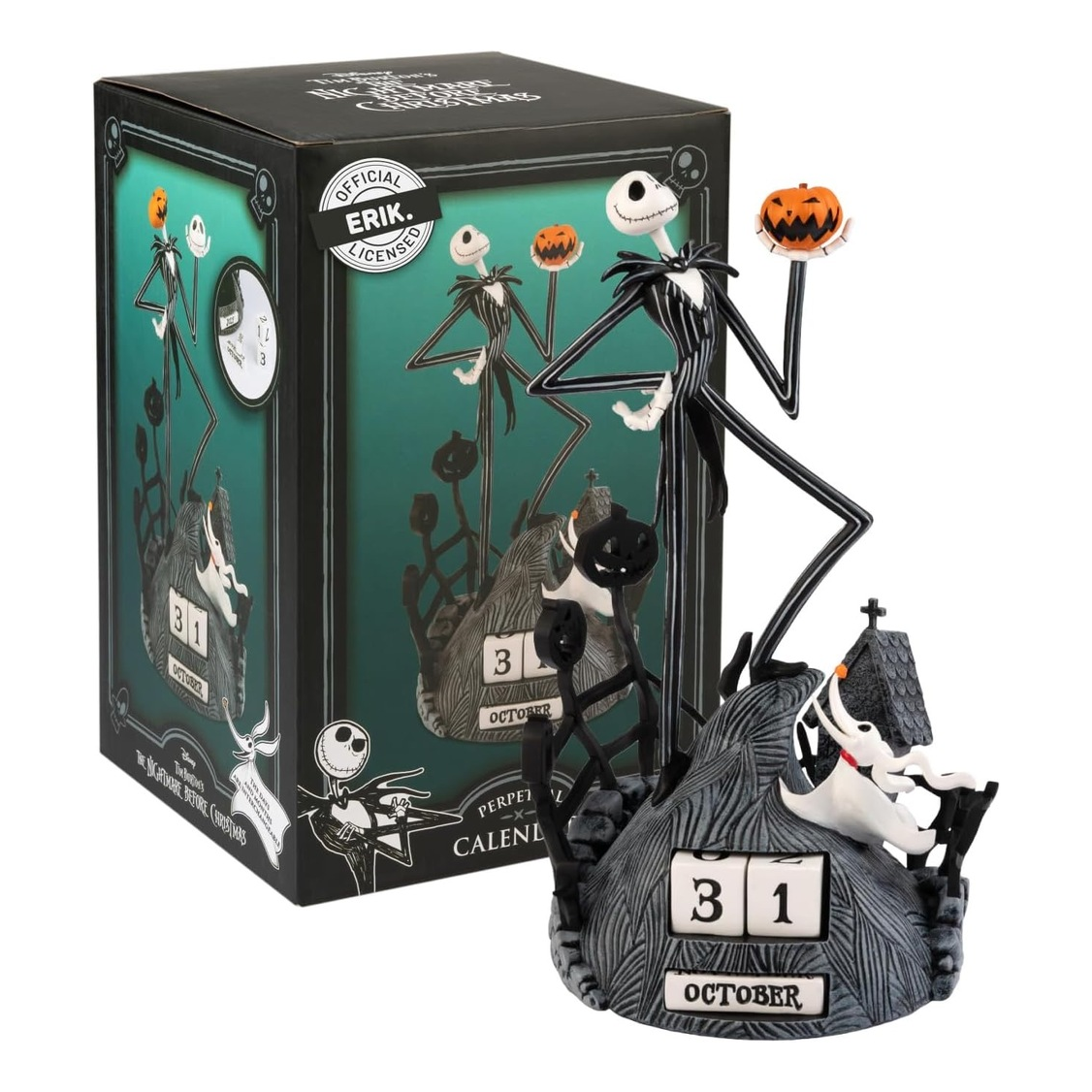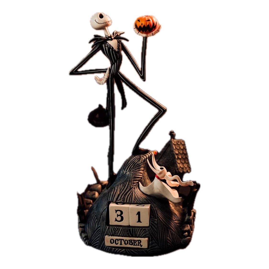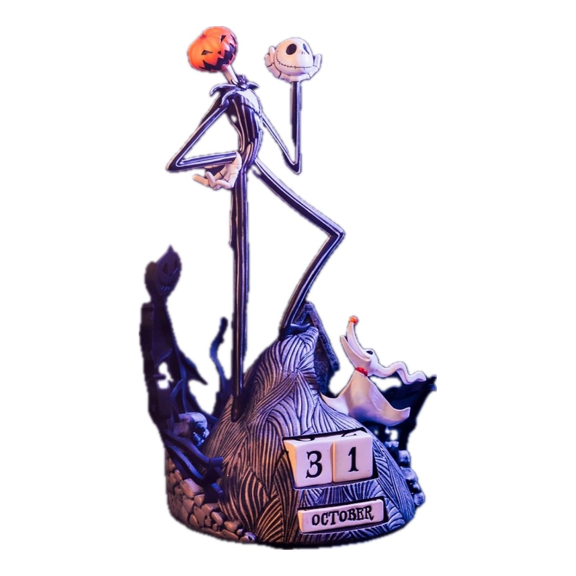 Calendario perpetuo 3D, realizzato in resina e dipinto a mano. È composto da 2 parti mobili, la zucca e la testa di Jack Skellington, queste due parti sono sostituibili tra loro per poter personalizzare la statuetta. Include 5 blocchi con giorni e mesi che possono essere scambiati e combinati per ottenere tutte le date possibili.