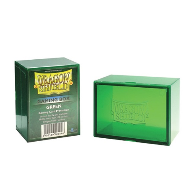 The Dragon Shield Gaming Box keeps your cards safe between games. Each Gaming Box is like a treasure chest protected by the epic power of a dragon, with your most precious cards tucked inside.Fits 100+ sleeves per box. Works with standard size (63×88 mm) or Japanese size cards (59×86 mm). Locks with a tight-fit plastic overlay. Hard as dragon hide.