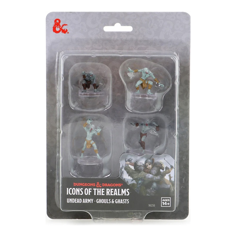 D&D Icons of the Realms: Undead Armies – Ghouls and Ghasts contains four terrifying undead foes — 2 Ghouls and 2 Ghasts — for your adventurers to battle! Dungeon Masters can quickly build new encounters with the mix of Ghouls and Ghasts. With its non-blind packaging, building your undead army is quick and simple!