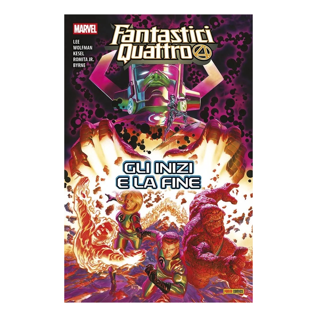 • Celebriamo i Fantastici Quattro, una famiglia costituita da personaggi con gli stessi problemi della gente comune! Attraverso di loro, Stan Lee e Jack Kirby proiettarono il fumetto nell’età adulta. Riviviamo dunque le loro origini con una storia disegnata da una schiera di artisti di primo piano!