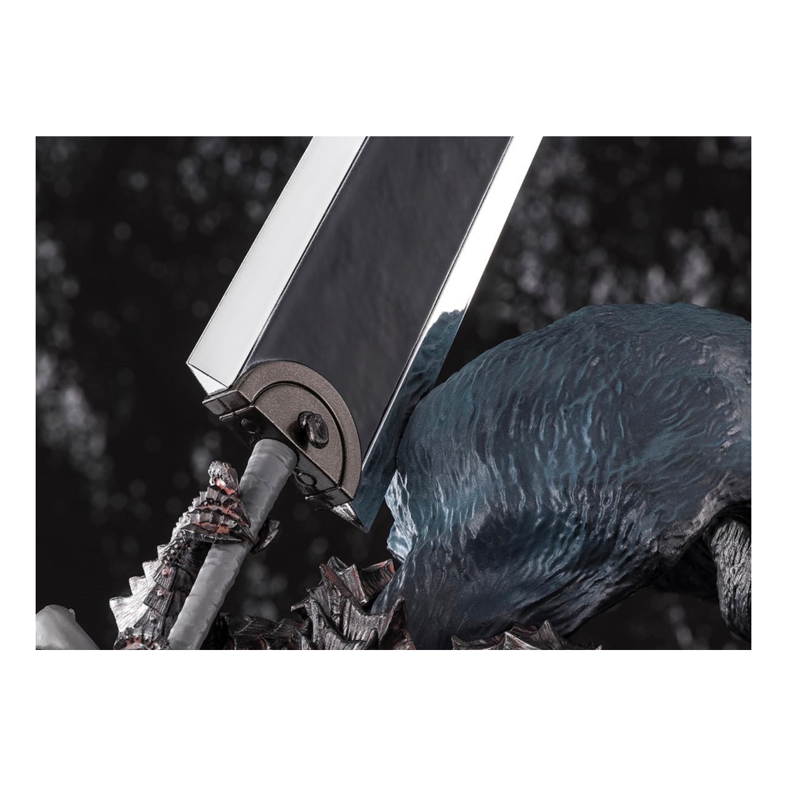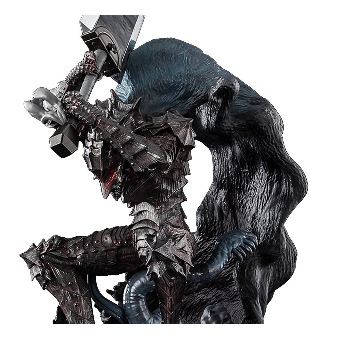 This Berserk Guts Berserker Armor FiguartsZERO Touche Metallique Statue measures approximately 35 cm tall. Ryu Oyama, a sculptor who specializes in designing creatures, has sculpted Guts from the Battle of the Sea God in a spectacular form. The highlights are the partially plated large sword “Dragon Slayer” and the impressively detailed tentacles of the Sea God. A collection sheet and display support parts are included.