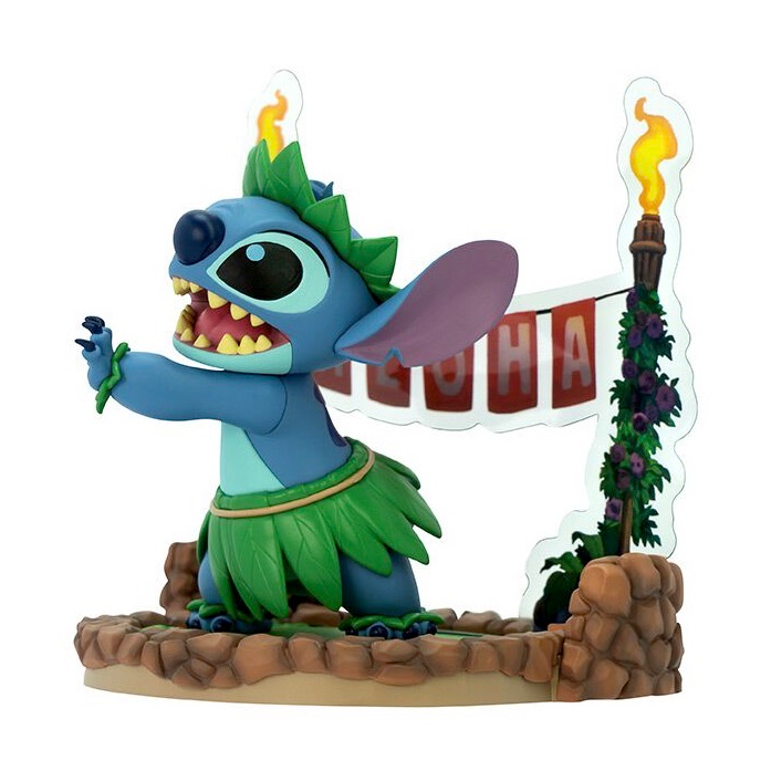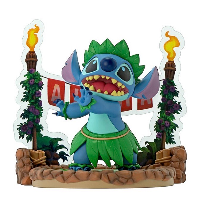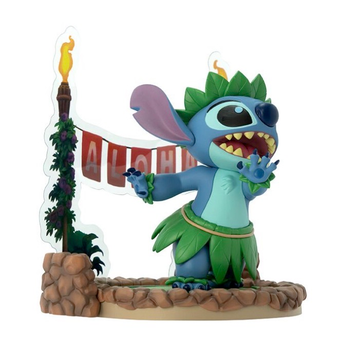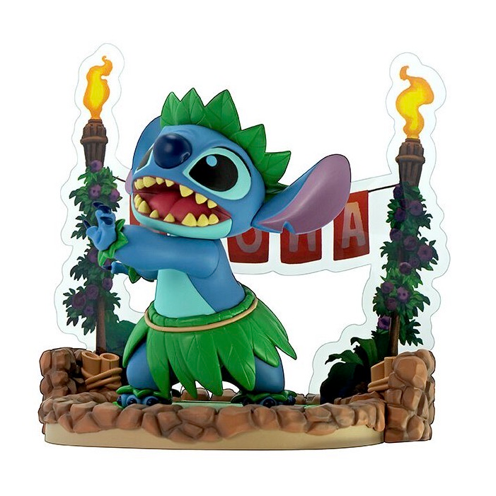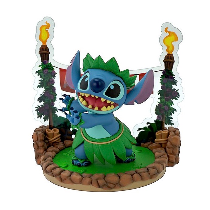 Wearing traditional Hawaiian gear and performing the Hula dance on a colorful and tropical platform, this figure captures the playful and cute nature of the galaxy’s favorite alien!