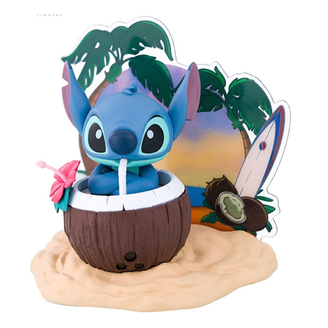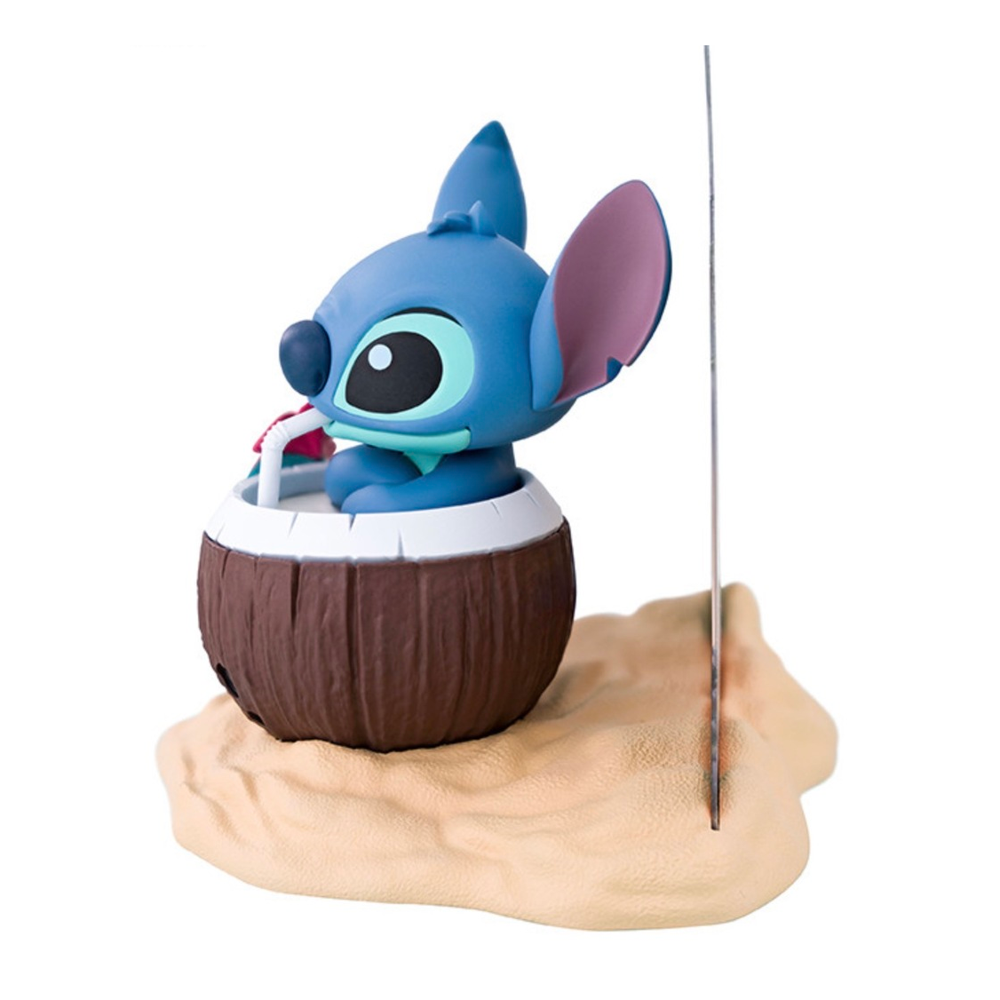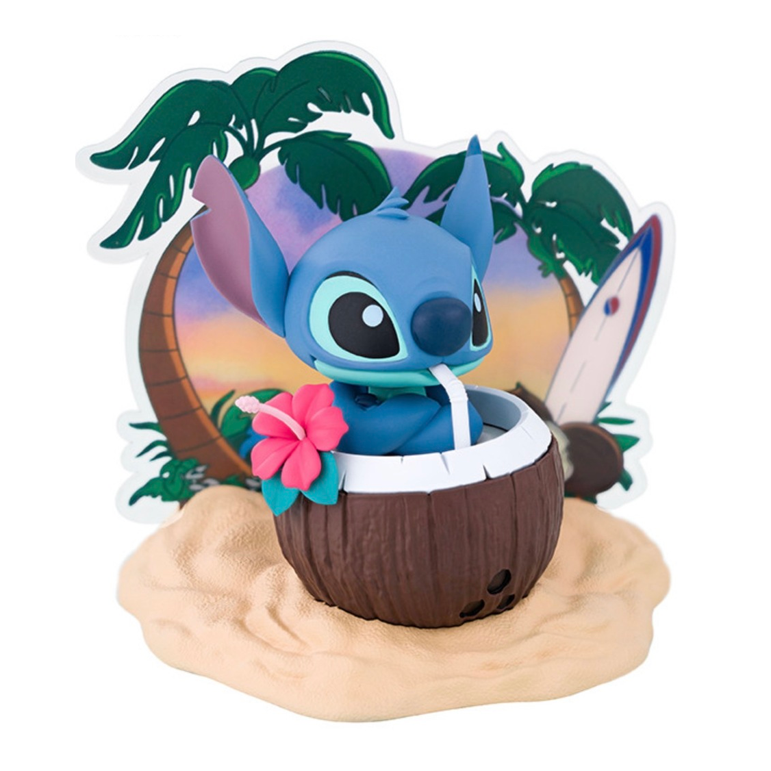 This irresistibly cute figure features Stitch lounging inside a coconut, enjoying a beachside moment of fun. With his cheerful look and iconic ears, Disney’s mischievous alien shines in this summery version. From the textured shell to the vibrant beach colors, every detail brings warmth and whimsy to the scene. Stitch’s relaxed pose adds a playful, feel-good vibe that’s hard to resist. Ideal for brightening up a shelf or workspace, it’s a joyful piece for fans of all ages. A small tropical escape, full of charm and personality, ready to join your collection!