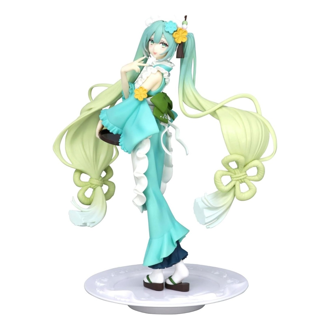 Indulge in the sweetness of Hatsune Miku with the Exceed Creative SweetSweets: Hatsune Miku – Matcha Parfait Ver. by FuRyu. This delightful figure features Miku dressed in a charming matcha-themed outfit with, inspired by the popular Japanese dessert. With intricate details that capture the essence of her character and the playful dessert theme, this figure is perfect for fans of Hatsune Miku and those who love unique, food-inspired designs.