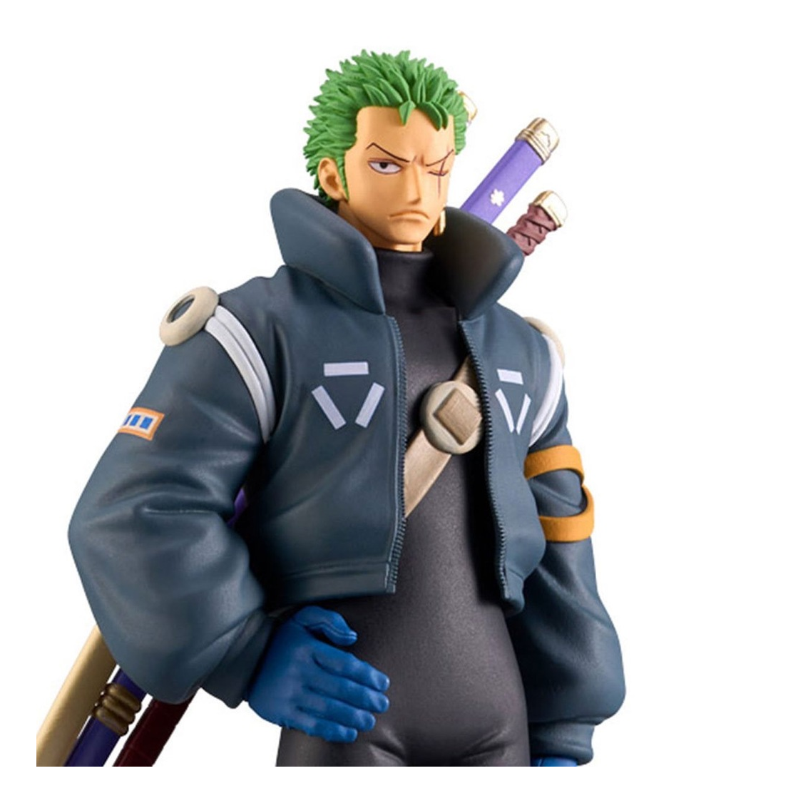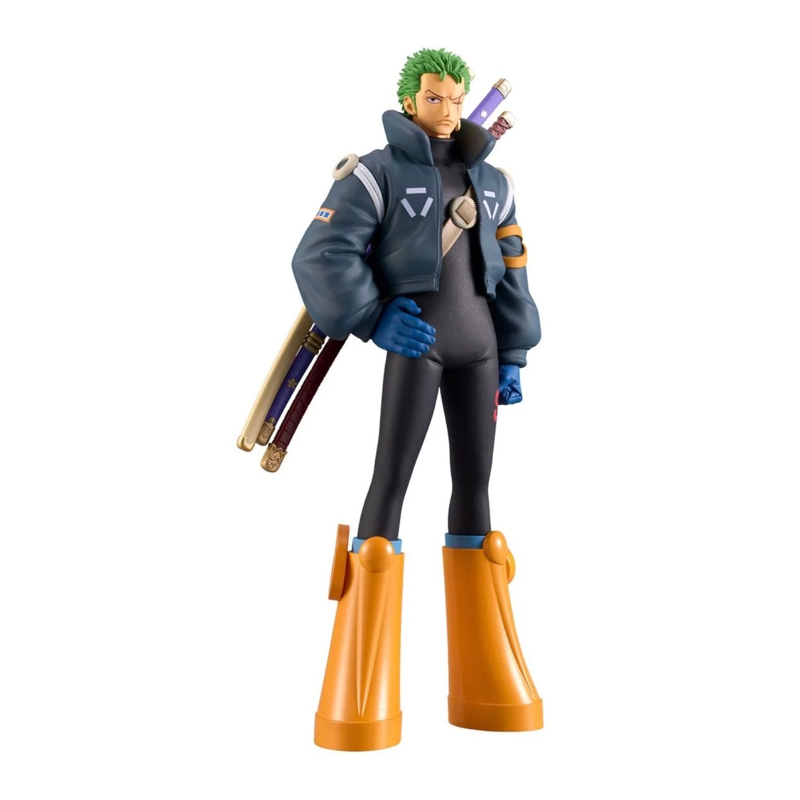 From the legendary One Piece anime series comes an entry into the popular DXF The Grandline Series: Roronoa Zoro! Dressed in his new Egghead Island outfit, he flashes a big grin as he looks forward to a new adventure. Made of PVC, this figure measures over 17 cm tall.