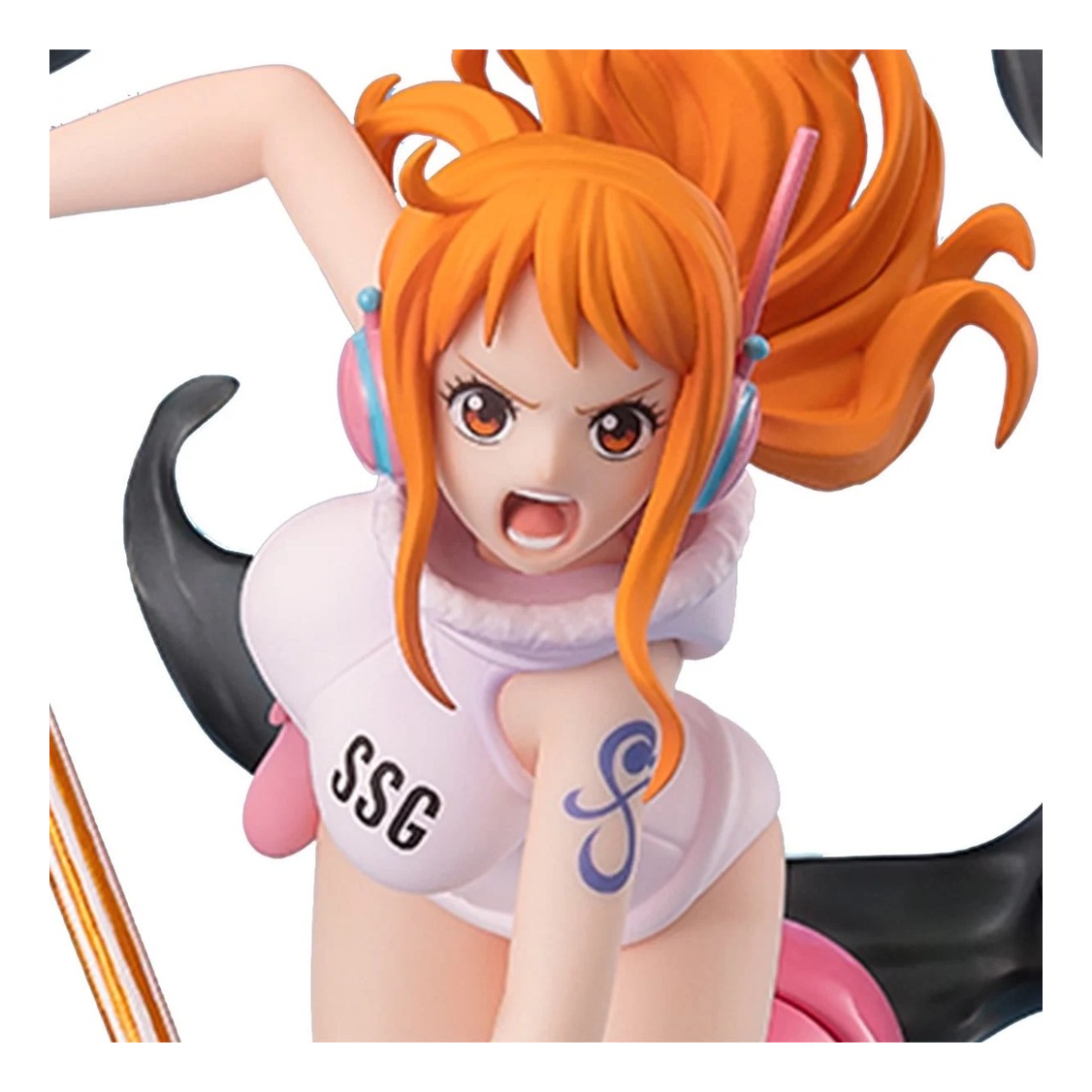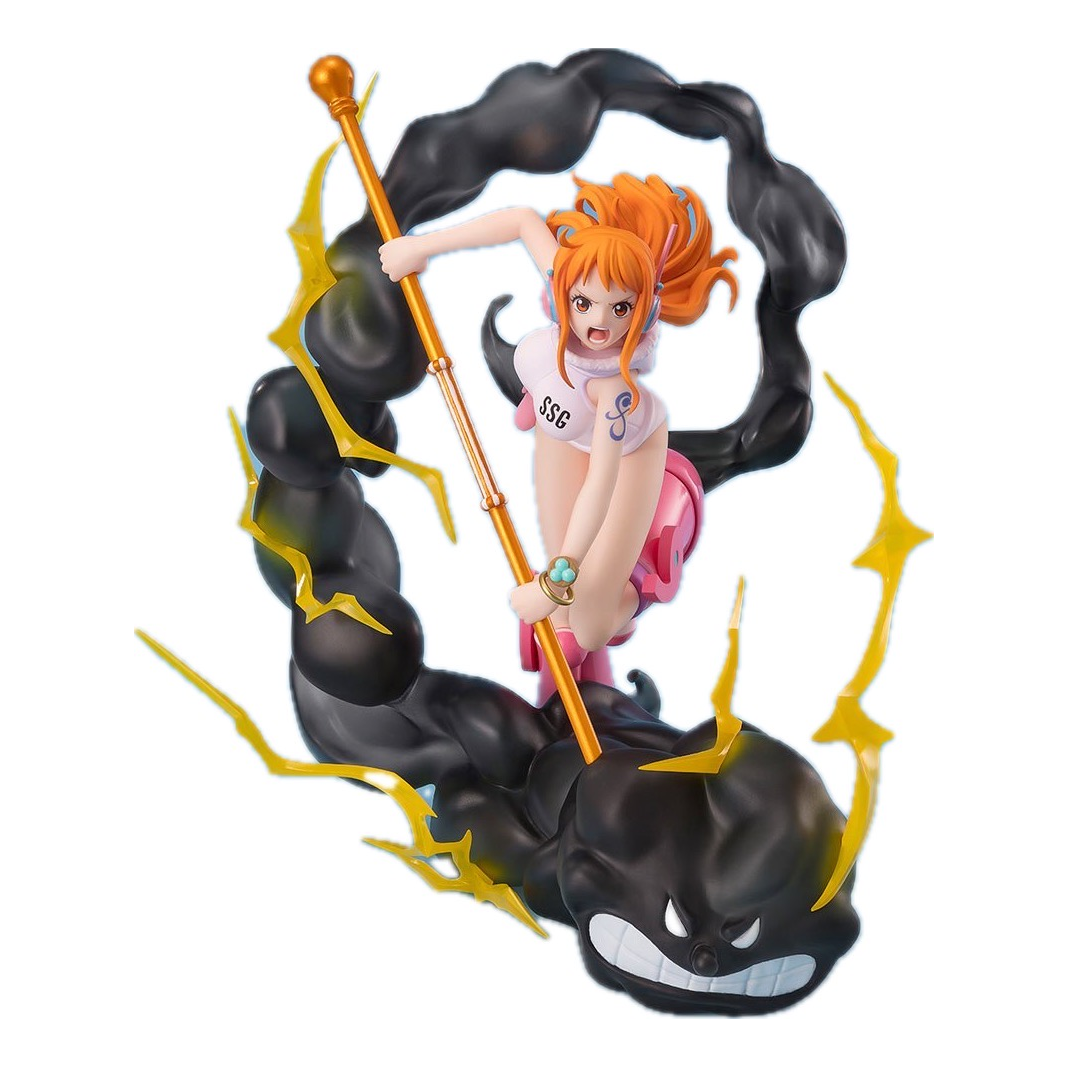 The Future Island Egghead version of Nami is recreated in three dimensions with powerful effects, reminiscent of the scene where she unleashes her thunderbolt. The statue measures about 17 cm tall.