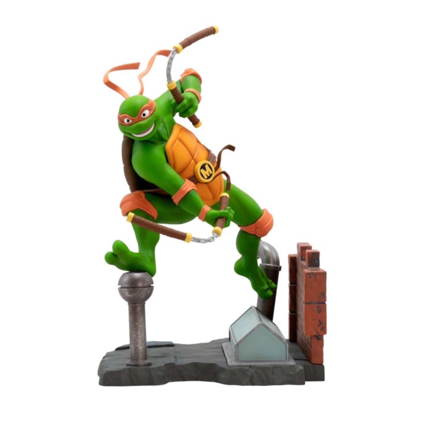 Michelangelo, the “party dude” and free spirit of the team! A fan of pizza, video games and skateboarding, Mikey is the most relaxed turtle with a great sense of humor for any occasion. Behind his mischievous side, however, hides a character with a good heart and formidable fighter and agility skills, using his nunchucks with speed and dexterity.