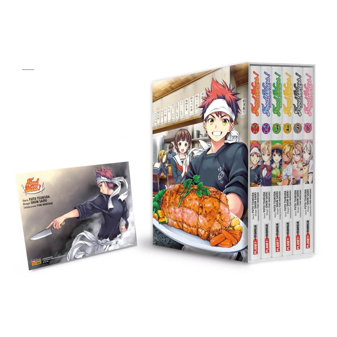 Il modo migliore per leggere le avventure dell’aspirante chef Soma Yukihira?Ovviamente il cofanetto speciale che raccoglie i primi sei numeri di Food Wars: quasi milleduecento pagine del celebre manga di cucina in una nuova edizione riveduta e corretta. In omaggio un’esclusiva cartolina disponibile solo con la prima tiratura del cofanetto!