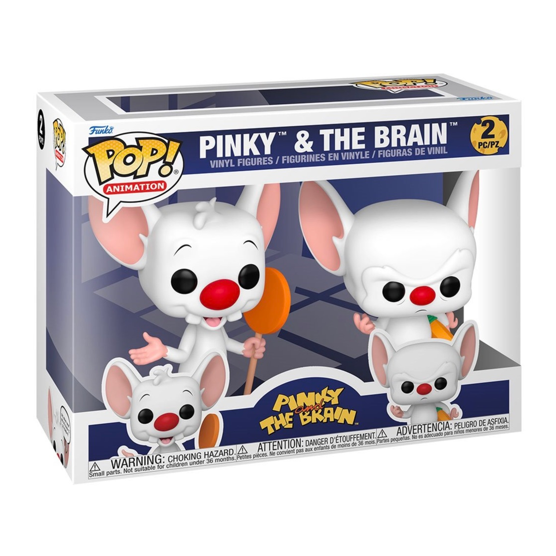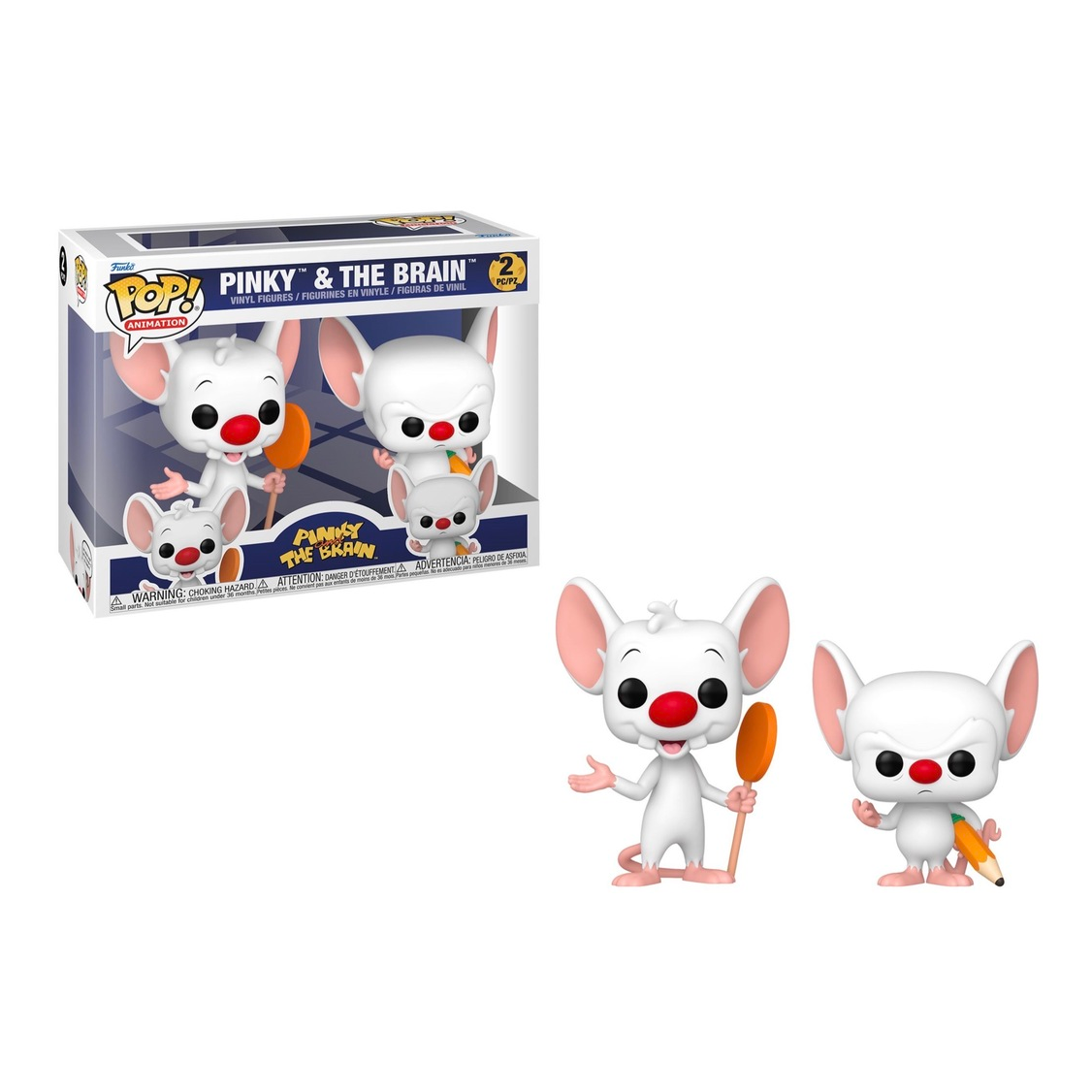 This Pinky and The Brain Funko Pop! Vinyl Figure 2-Pack measures approximately 10,5 cm tall and comes packaged in a window display box.