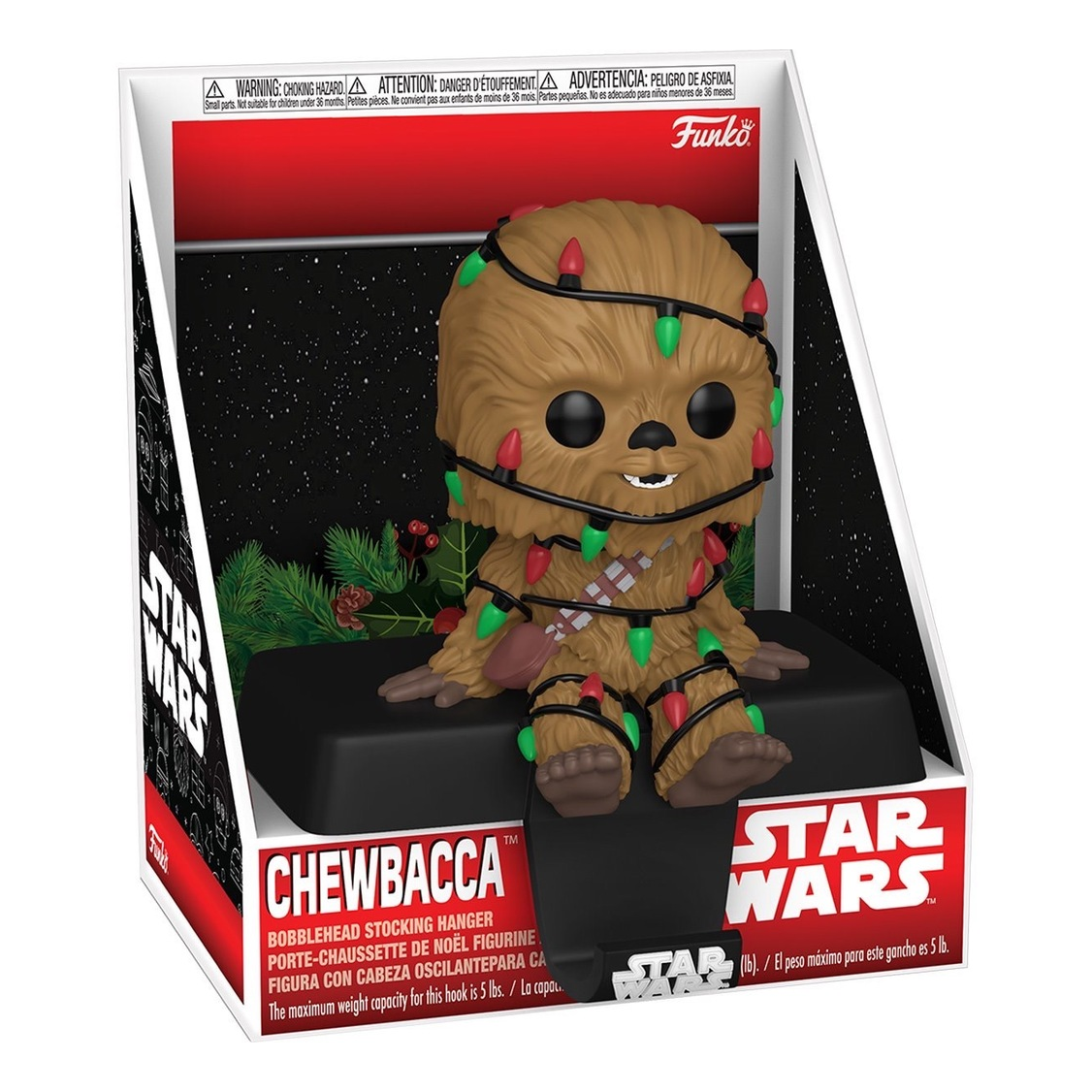 Display your stockings on your mantle in style with the Star Wars Chewbacca Holiday Edge-Sitter Stocking Holder! This Wookie is ready to add some holiday flair and functionality to your décor wrapped in festive red and green lights. Give him the best seat in the house when you add stocking holder to your Star Wars Funko collection!