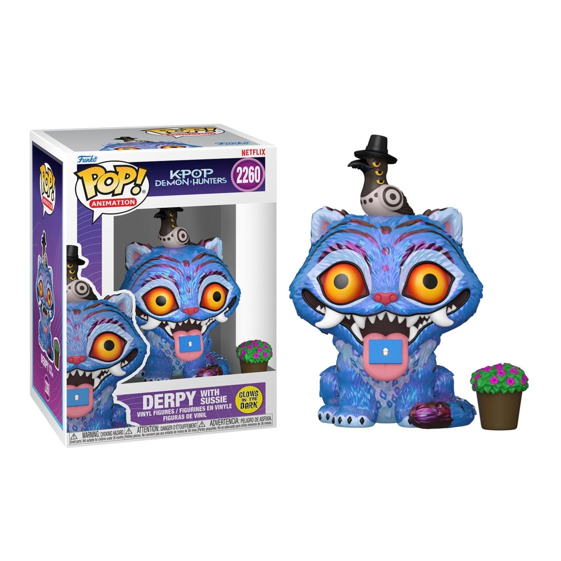 Straight from the screen to your Funko collection, this KPop Demon Hunters Derpy with Sussie Glow-in-the-Dark Funko Pop! Vinyl Figure brings the beloved tiger and bird show to 3D life! The figure measures approximately 11,5 cm tall and comes packaged in a window display box.