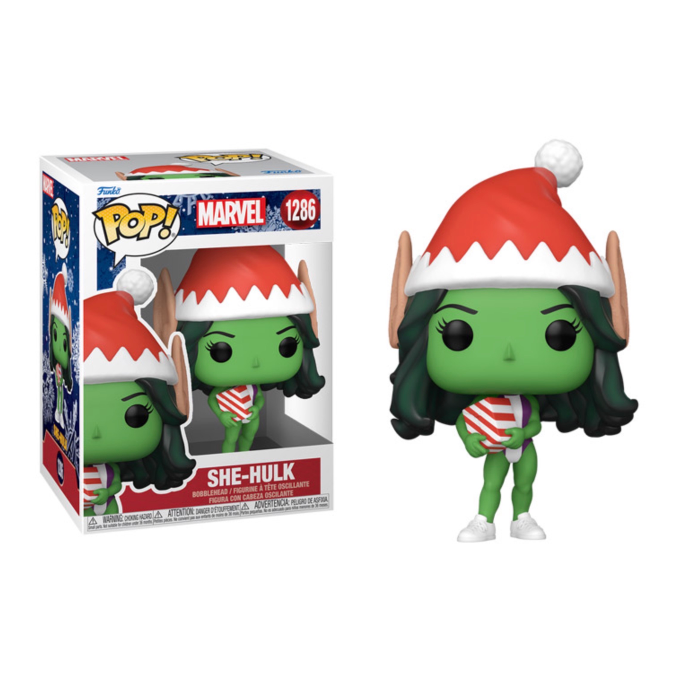Suit up for the holidays with She-Hulk! This hero has gotten into the spirit of the season by donning a jolly red and white hat with elf ears. Complete your Marvel collection with this Marvel Holiday She-Hulk Funko Pop! Vinyl Figure Measures approximately 9 cm tall and comes packaged in a window display box.