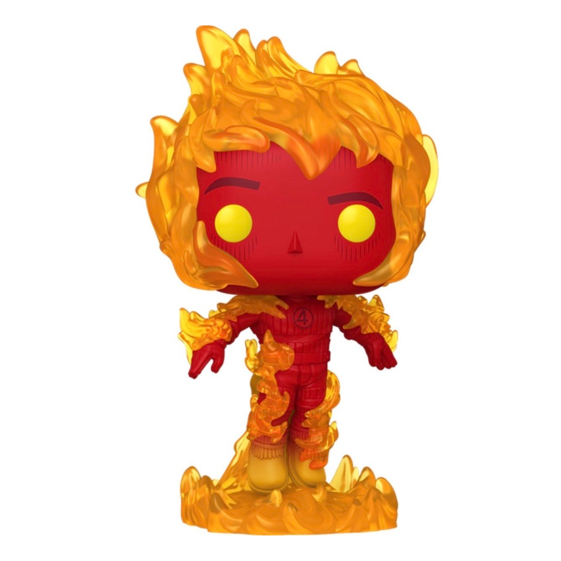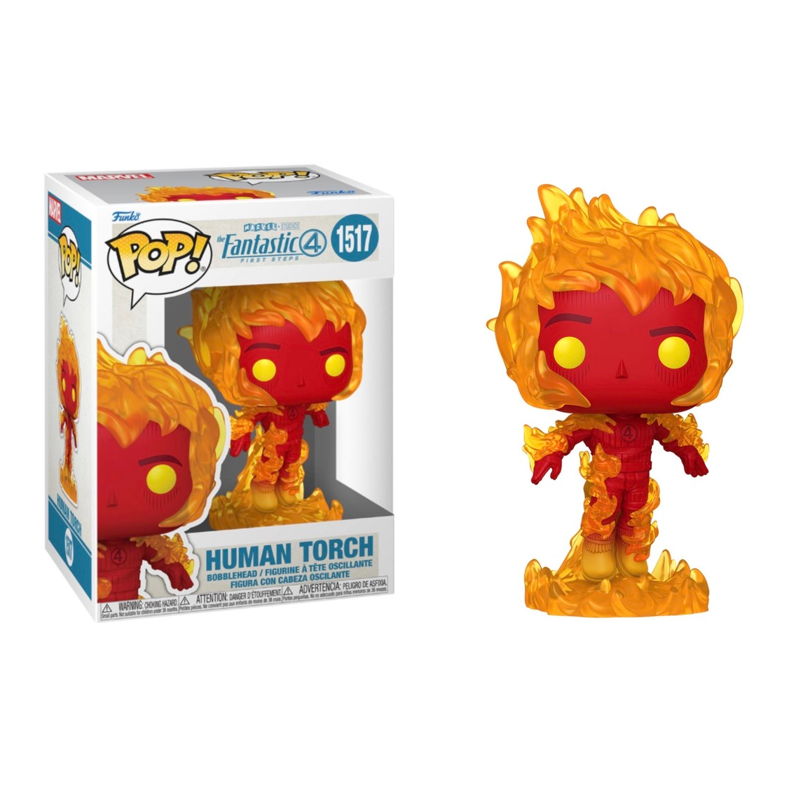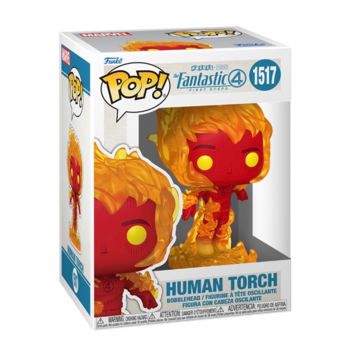 The Fantastic Four: First Steps Human Torch Funko Pop! Vinyl Figure measures approximately 9 cm tall. Comes packaged in a window display box.