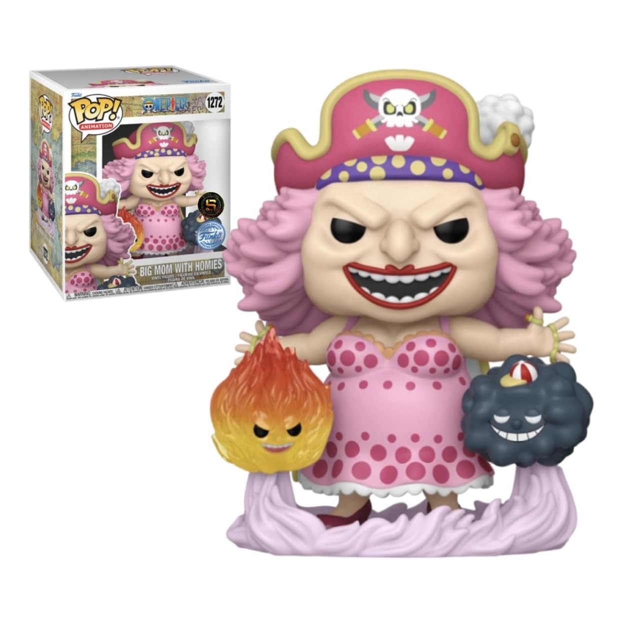 Set sail for adventure with Charlotte Linlin, aka “Big Mom,” the terrifying captain of the Big Mom Pirates and her homies Napoleon, Prometheus, and Zeus. But have no doubts – she’s here to take over your scurvy crew and rule your One Piece Pop! collection! Standing about 15 cm tall, this oversized One Piece Hungry Big Mom Deluxe Pop! Vinyl Figure comes packaged in a window display box.