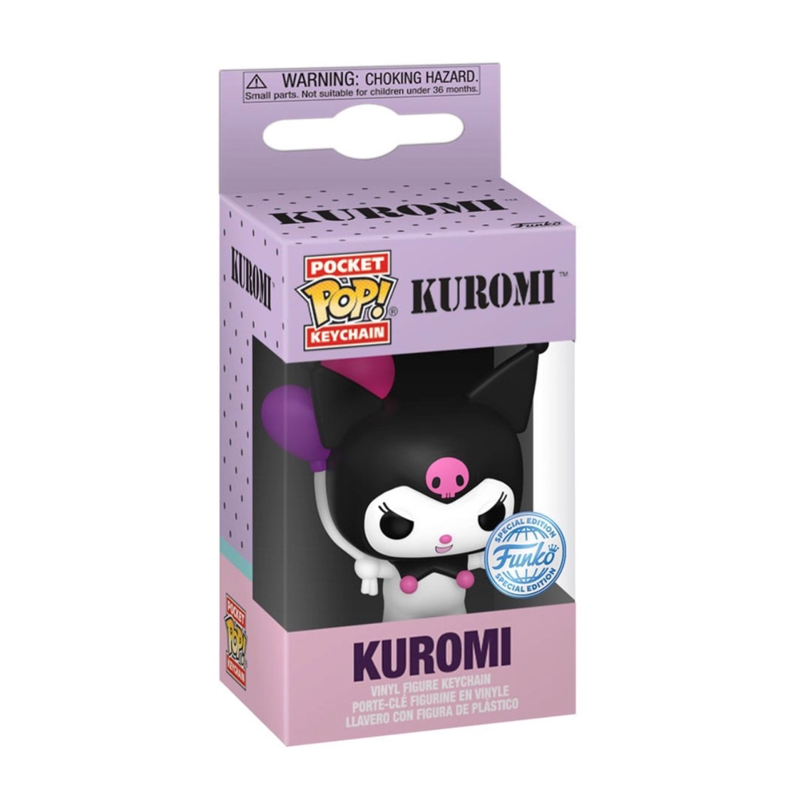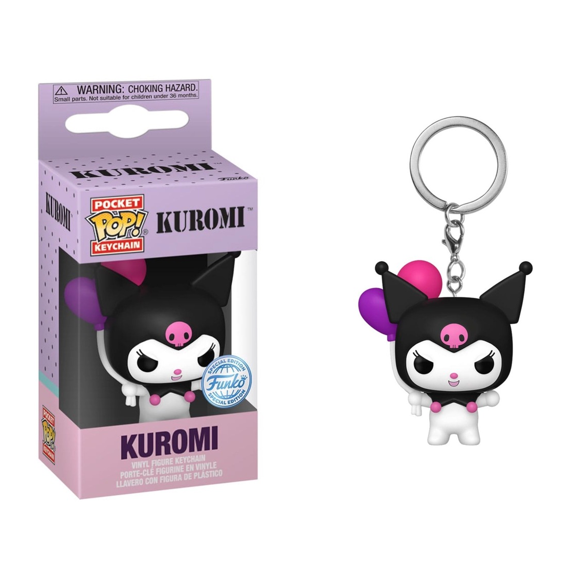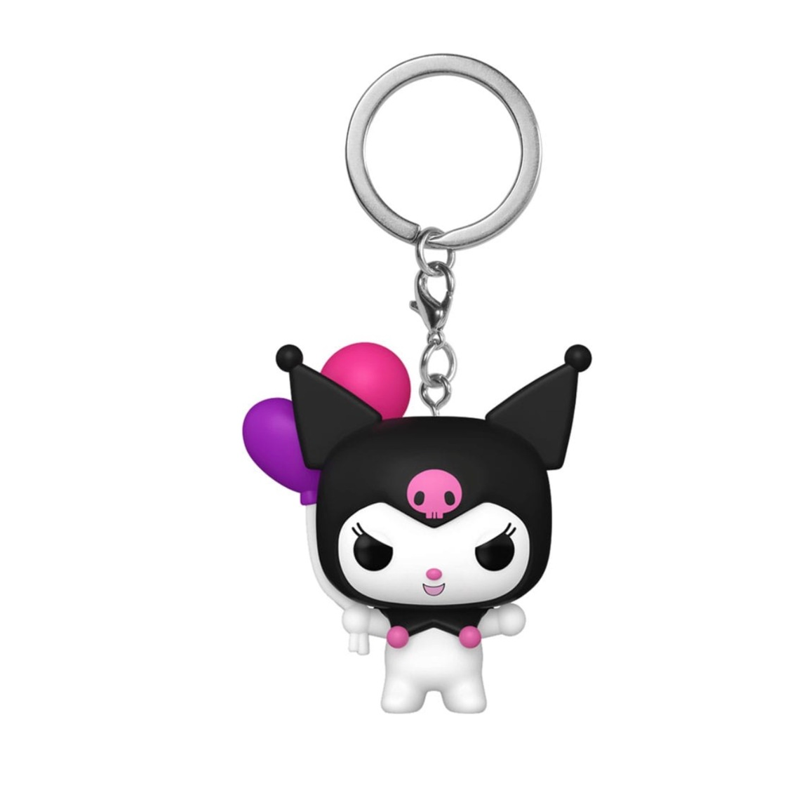 This Hello Kitty Kuromi Funko Pocket Pop! Key Chain measures approximately 4 cm tall and comes packaged in a window display box